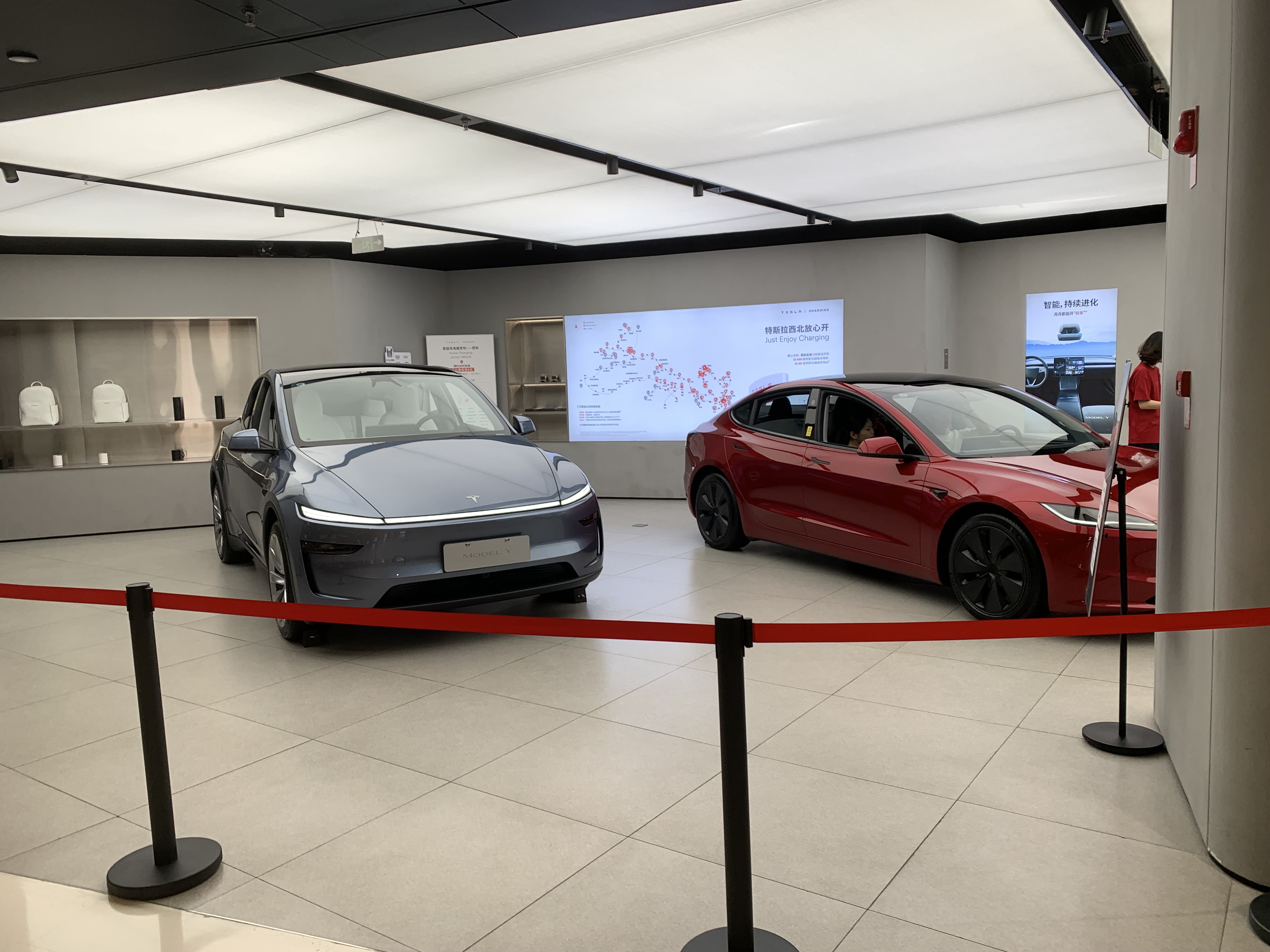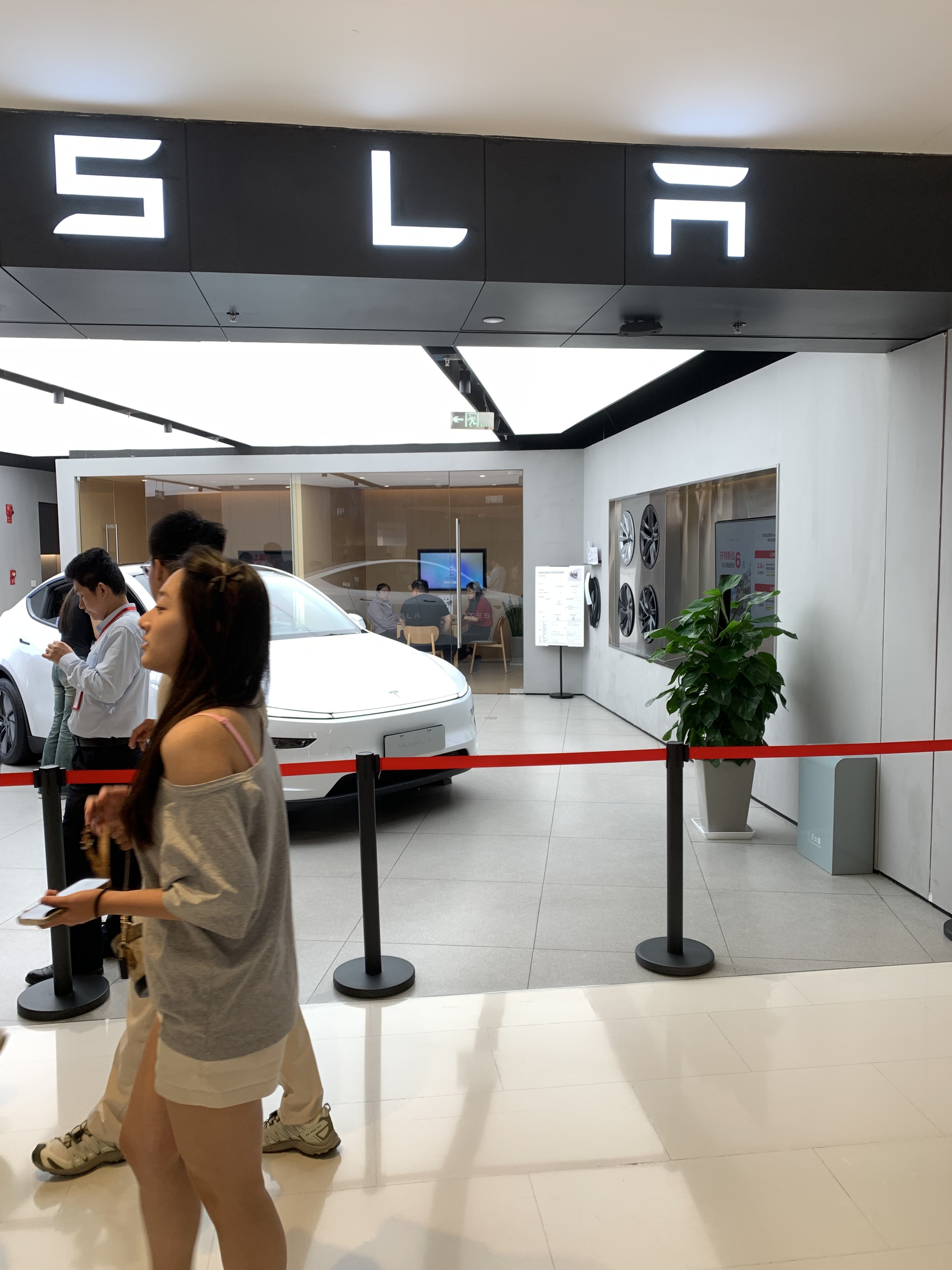 テスラのお店というか展示というのか、大雁塔の西にドでかいモールがあり、その中にあった。