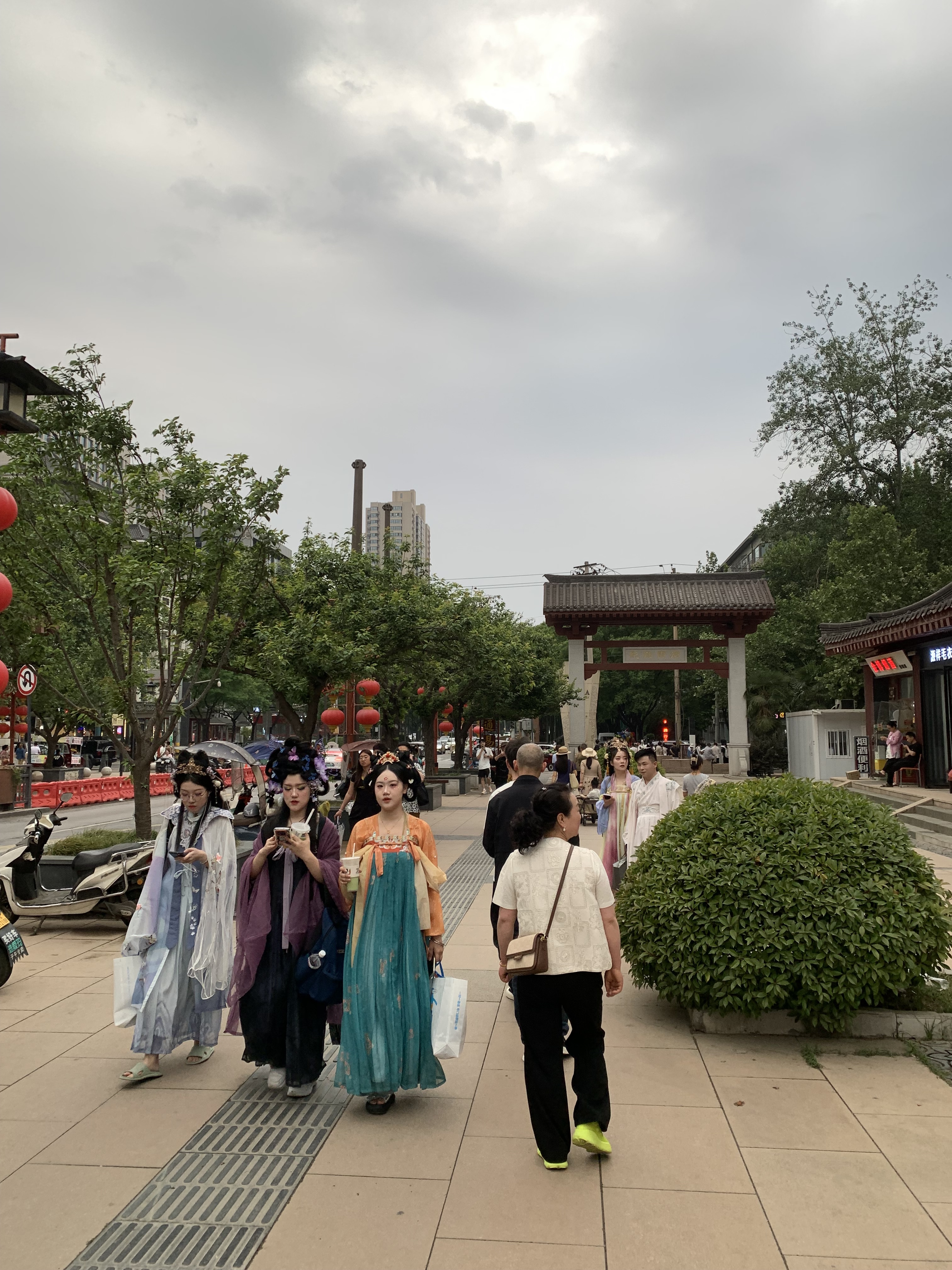 コスプレしてんのかな?と思ったがどうやら西安来たら唐時代の楊貴妃みたいな格好して歩くのが流行ってるらしい。暑いのに大変だな。借りる服代は100元ぐらいらしい。