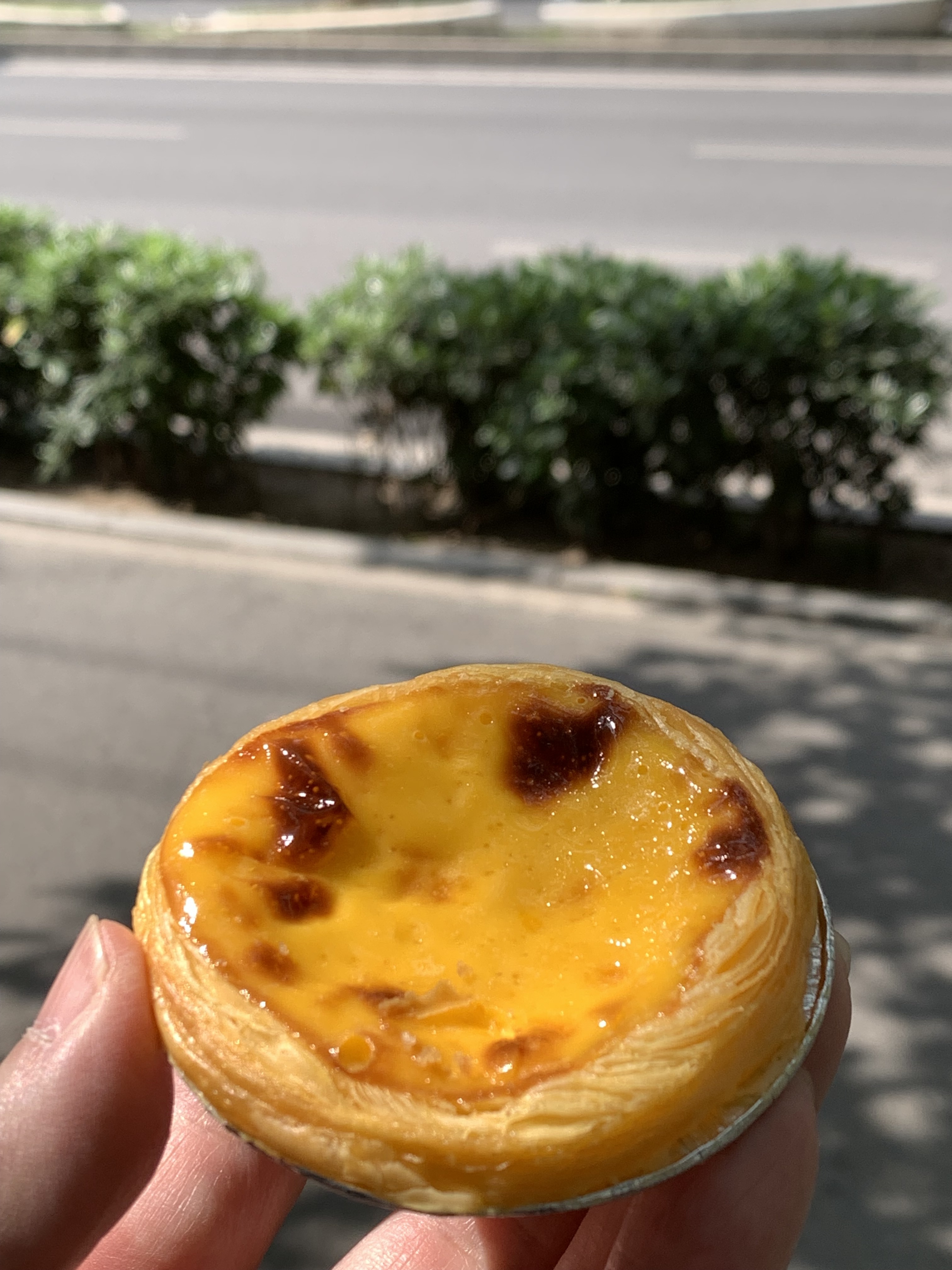 5/4  ホテルを出て東方向、太白南路の方に歩いてすぐ、パン屋?というかお菓子屋?みたいな店でエッグタルトを2個買って食べる。すこぶる旨い! 一個3元。