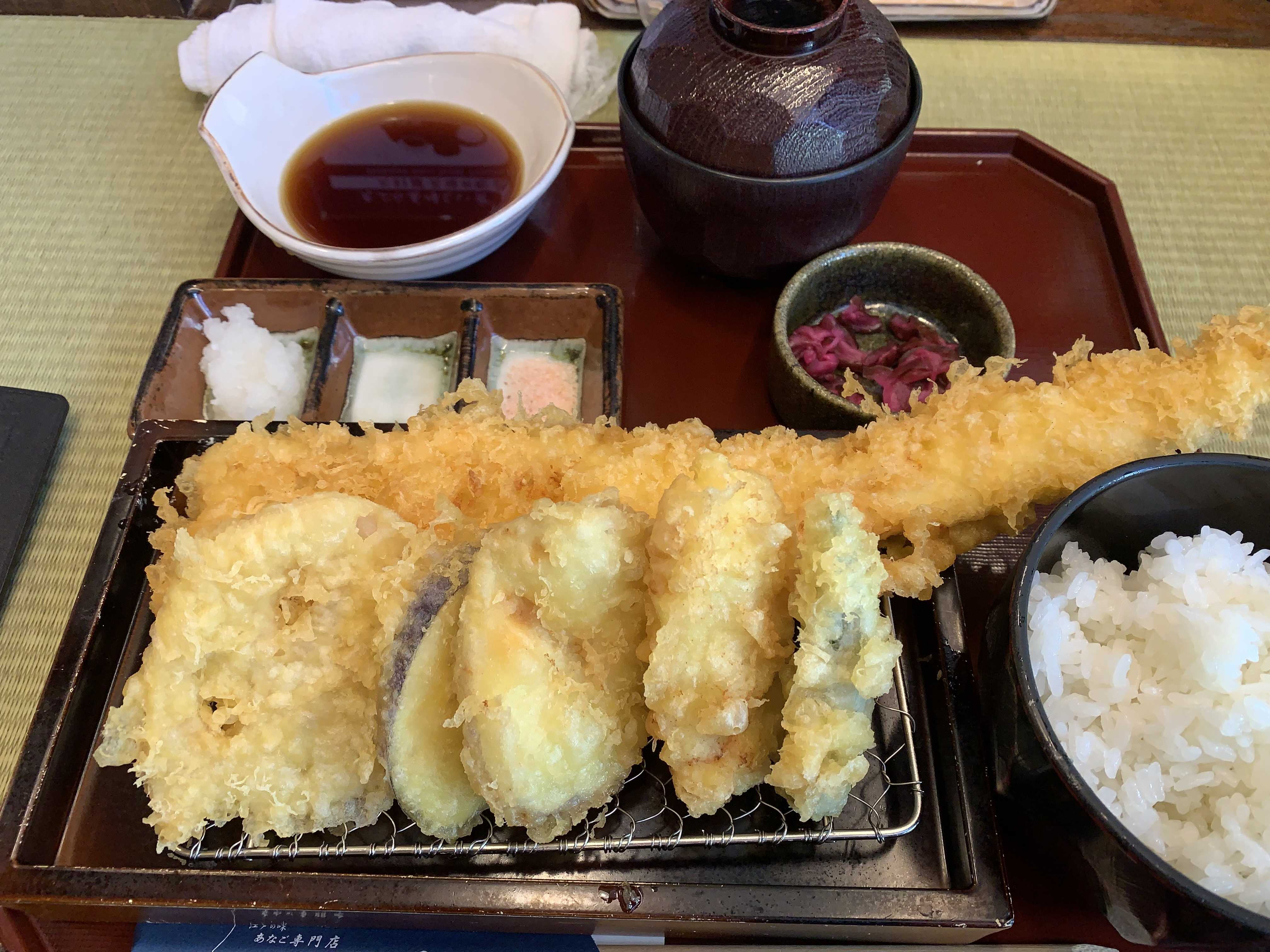 東京だし値段と見合った天ぷら定食だと思う。が、もう年なので少しぐぐぐっときたかも。 あなご丼もある。