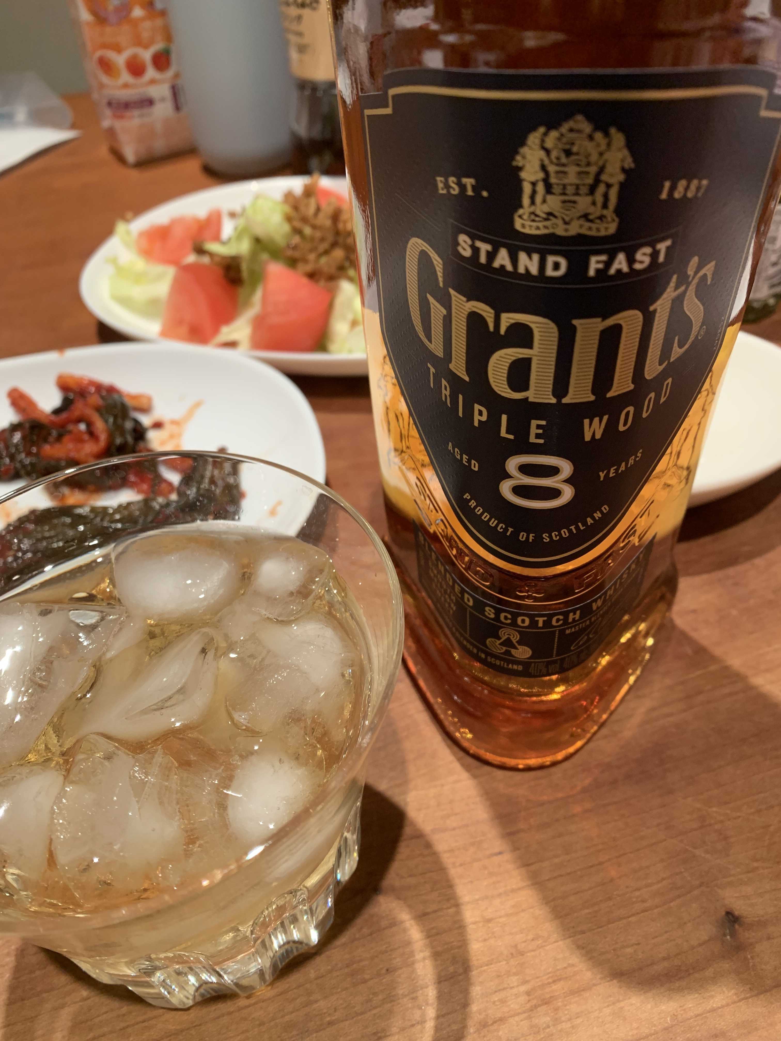 ねこまんまねこ氏はそれほどウィスキーを飲むわけではないが、ワインやビールよりもウィスキーや焼酎の方が総アルコール量から考えて経済的である。そこでねこまんまねこ氏は安くて美味しいウィスキーを探す旅を始め、定年後の低コスト生活に役立てるつもりなのである。まずは手始めにカクヤスで売っていたスコッチのコレ。2400円。これまで大体5000-10000円のウィスキーを買っていたので、2400円はとてもカクヤス。が、薬みたいな香りが強くする。高いウィスキーには絶対無いクスリみたいな薬屋みたいな香り。とはいえ氷が溶けるとともにだんだんクスリの匂いも消えた気がする。香りの高さとか崇高な感じは無いけど、そこそこスコッチ感もありモルトの旨味とかグリセリンの甘味もある。グランツ、はスコッチと言っても安価なレンジで勝負している造り手で、12年でも3000円程度、何年と記されていない赤ラベルで1480円ぐらい。赤ラベルで年数が書いてない場合4年ぐらいと考えて良いだろう。まだウィスキー初心者なのでコスパ分からないけど、これならまあまあ飲めるかも。ただ氷を入れるので翌日お腹痛くなる。