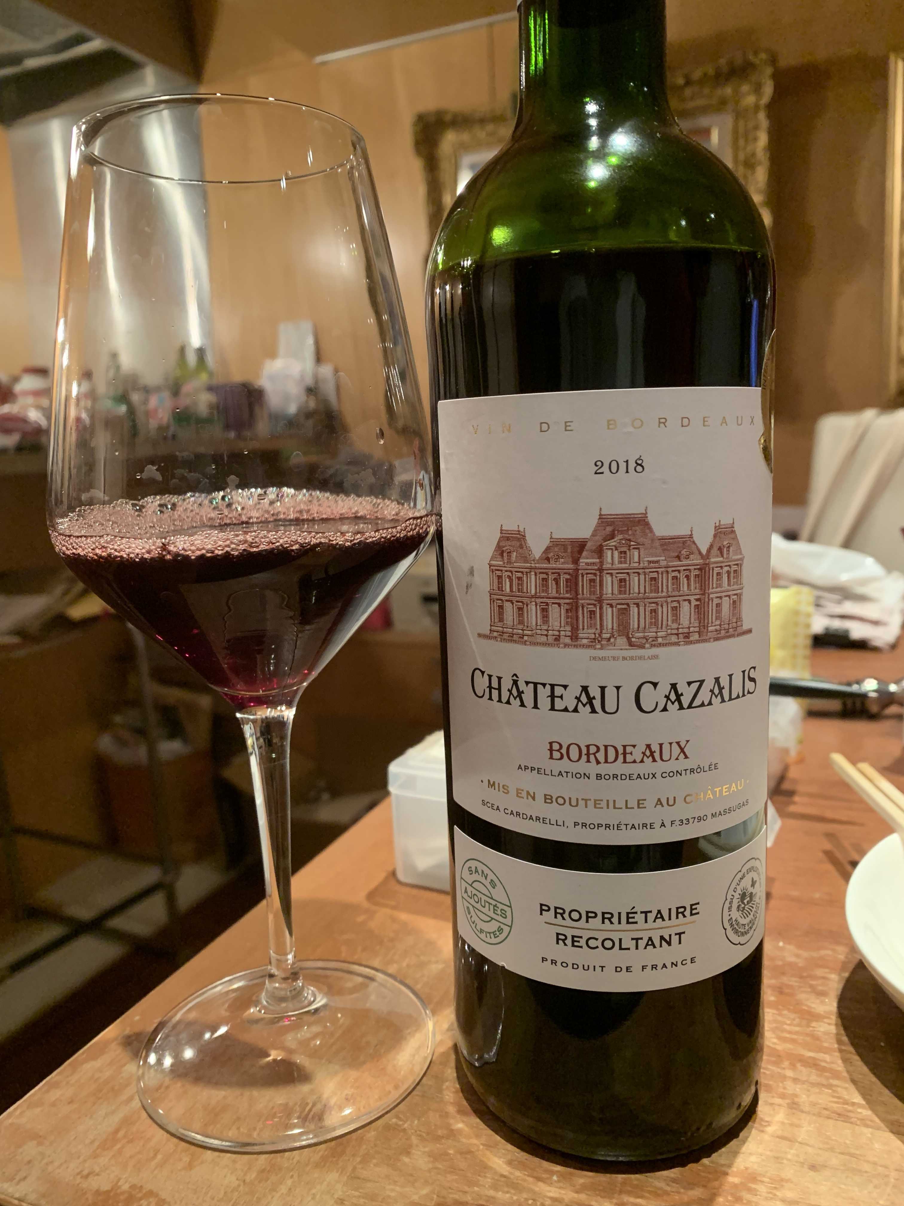 昔、ラジオで田崎真也さんがラベルにボルドーって書いてあって瓶のワインならばそれは美味しいワインです、と断言していた。フランス人だって普通の人は南仏の安いワインやヴァン・ド・ターブルを飲んでいて、なかなかAOCボルドーは飲まないと言っていた。それはもちろんメドックとかクリュ・ブルジョワとか格付けワインの方が美味しいけど、いつもそんなの飲めるのは富裕層なのだ。という事で、香りは埃や土の香りで良いワインの予感。やや強めの酸、細かいタンニン、ミディアムボディでイチゴ、プラム、リコリス、グリセリンの旨みやバニラっぽい樽香が詰まっている。美味しい。コスパ抜群。株式会社未来堂という名古屋の会社が輸入。2018年は非常に良い年だから普通のボルドーでも十分美味しい!