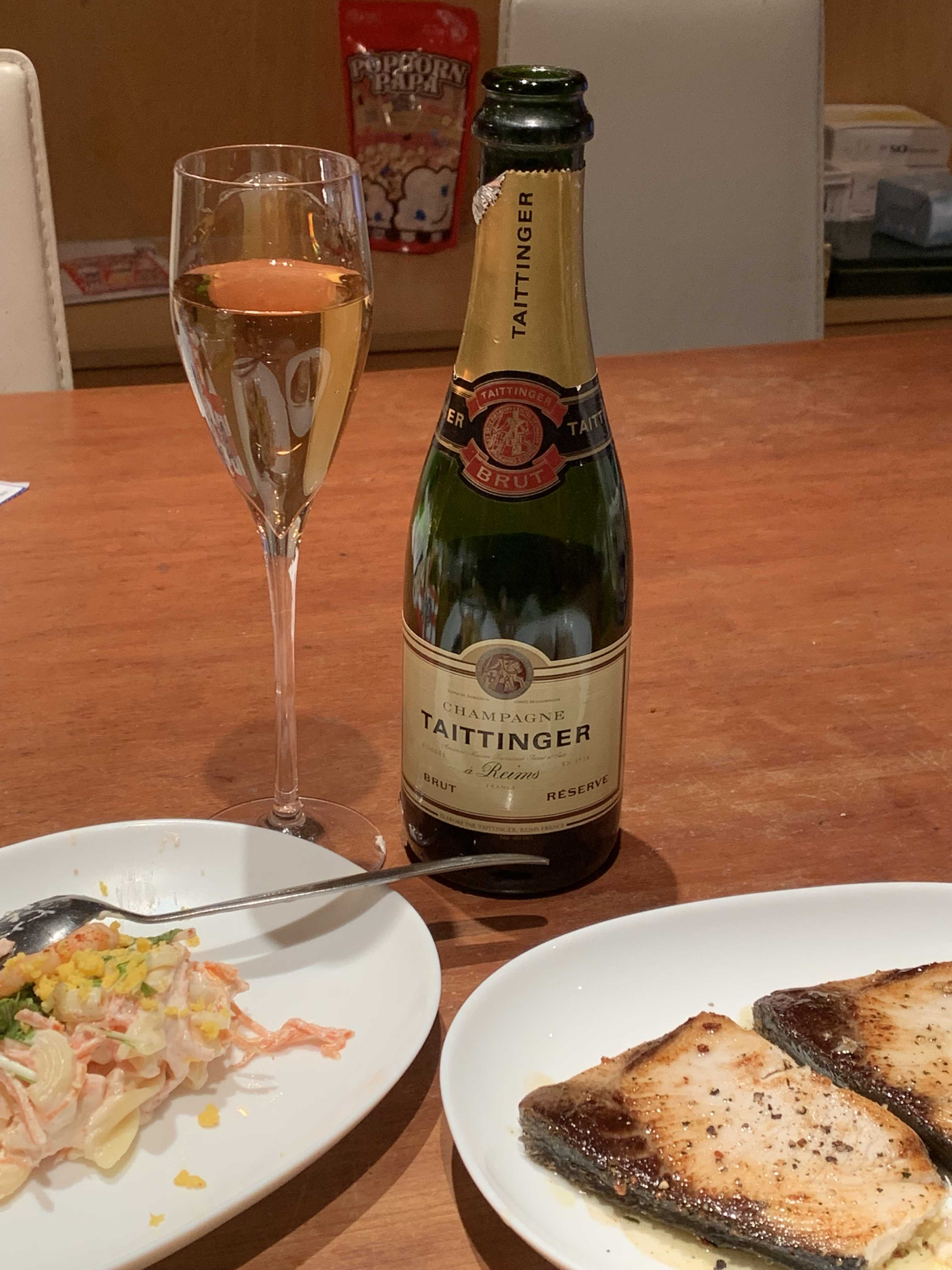 セラーの奥に。いつからあったか分からないテタンジェのハーフボトル。色が熟成を現す黄金色、香りも強め。非常に濃い濃厚なリンゴや麦わら帽子の香り。泡がやや気が抜けてしまっており、その分白ワインのような熟成した円やかさとグリセリンを感じる。10年以上前のもの。TAITTINGER BRUT RESERVE
