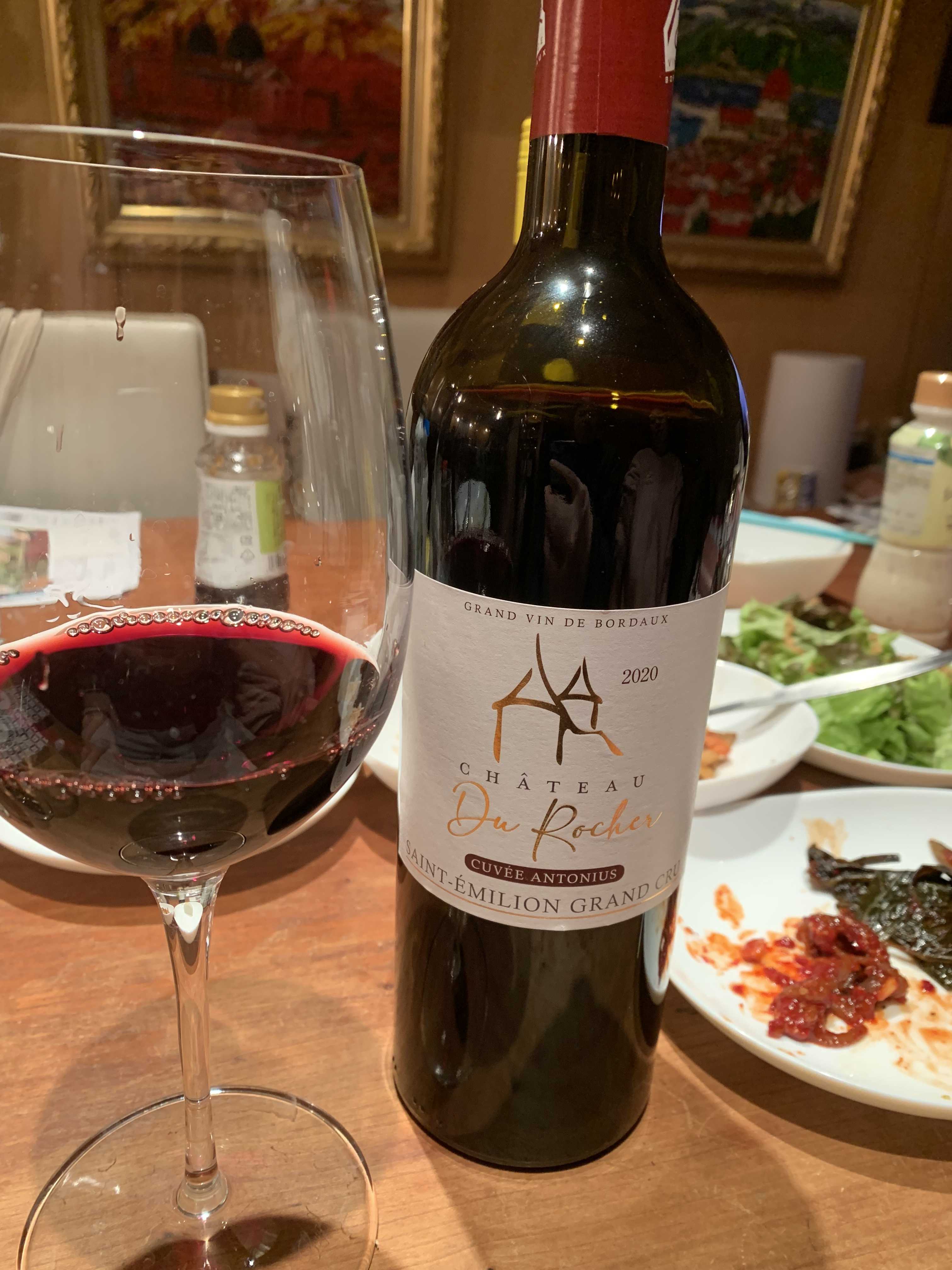 シャトー デュ ロシェ キュベ アントニウス。サンテミリオン グラン・クリュのワインで輸入はトモエワインアンドスピリッツ株式会社。濃いルビー色で、草原のアロマ。適度なタンニンと酸があり、モワッとしたメルローのボリューム。重層感と調和とバランスが素晴らしい。余韻も適度。クセが全く無く上質なワイン。