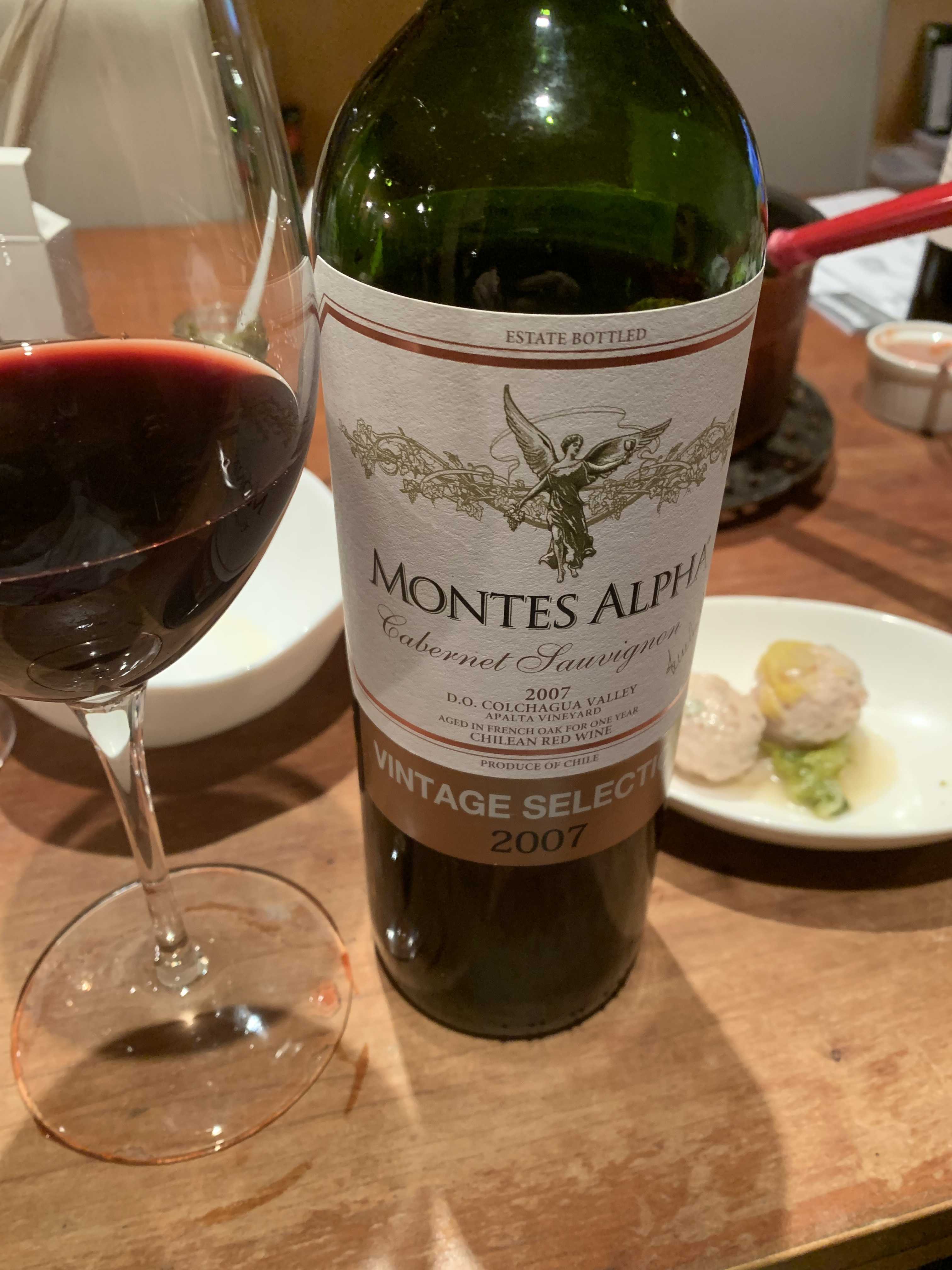 モンテス・アルファは、チリのモンテス社が造る上級ブランドで、エノテカやカルディで扱っているため日本ではメジャーになったコルチャグア・バレーのブランド。今では円安で2400円はしている。飲んだ人は多いはずだが、しかし、19年前のアルファはなかなか無いと思われる。香りはとても強く芳香で、色は濃い赤黒。タンニンはある程度細かくなっており、酸は中程度に残る。リコリスなどの良い香りと非常にふくよかなボリューム、グリセリンの丸さと甘味、全体的にボリュームと旨みが大きい。このワインが約20年の熟成で大きく変身することを知ったのは収穫。今30本7万円ぐらいで買っておけば15年後に素晴らしいエノテークが飲めるという事だ。