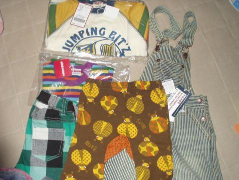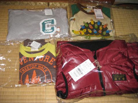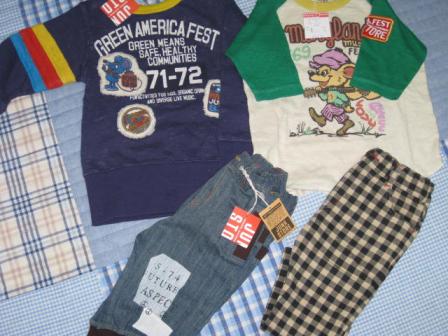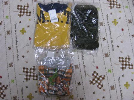 すべてビッツです。ジャケットはこちらで譲っていただきましたが、大事にねかせていてサイズアウトしてしまいました。交換者様すみません。ズボンは95サイズ、ユーズドです。(ジャケット、カエルトレーナーと是非コーディネートしていただきたいので、ジャケットとカエルトレーナーを一緒にお引取りしていただけましたら、おまけでつけますね)ズボン以外はすべて100サイズ、新品です。こちらの希望は1つ前の日記に書いています。よろしくお願いいたします。