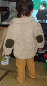 こんばんは。カタログを見て一目ぼれしたJUNKのボアジャンバー買いました。身長85位?の息子に90を買いました。とてもやわらかいボアであったかそうです♪ついでに後ろと中です。後ろのえりのところ(めくって見て初めて気付きました)にロゴが入ってます。でもカタログの男の子位の子が着たほうがかっこいいですね。