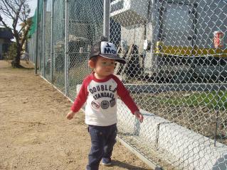 こんばんは。ここ数日、ぺー(息子)の風邪引きのグズグズで疲れています、ぺーちゃんままです。そして私も少々風邪気味です・・。ふぅ。とっても前になりますが、空斗んママさんのご好意でキャップを代行していただきました。何度もお店に問い合わせをしていただいたり、沖縄のお土産までいただいてしまいましたぁ!代行していただいたキャップ、大事に使わせていただきます!ありがとうございました。わかりにくいですが、てっぺんにボンボンが付いてます。ちょうどこの日は公園のとなりで村のご老人達がゲートボールされていて、そこのおばあちゃんにも「かわいい帽子ね!」と誉められました~。空斗んママさん、又私でお役に立てそうな時は使ってくださいね!