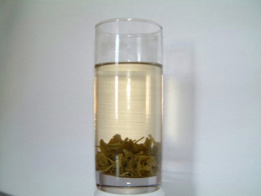 今日は、ちょっと浮気して他のお茶屋さんへ。と言うのも、今まで学んだお茶は『青茶』と呼ばれる烏龍茶の親戚のようなお茶ばかりだった為。福建省出身のお茶屋さん(で、しかも地元には自社の茶園まで持っている所)だけに、青茶に対する愛情も深く、紹介して貰ううのはことごとく同じ系統のお茶ばかりだったので、今回は上海の地元の人が専ら飲んでいる緑茶にこっそりと挑戦してみようか、という訳です。 近所の他のお茶屋さんを見てみると、龍井茶に碧螺春、太平猴魁…と。実に色々な緑茶が売られていますが、その中で江西省産の緑茶を発見。普段よく聞く産地の物でないだけに、興味津々です。しかもパッケージには「人民大会堂(日本の国会議事堂に相当)」で使われている、と書いてあります(本当かどうかはこの際どうでもよし)。という事は… 中国政府御用達? 取り敢えず飲んでみようと思ったのですが、やはり御用達だけに(?)試飲は「NG」。せめて気分だけでも味わおうと思い、2ランクほど落ちるお茶(それでも50gで15元(=約220円)する)を購入して家で飲んでみる事に。 店で言われた通りに、60~70℃位のお湯で淹れます。お湯の温度が高すぎると、お茶の葉の渋みも一緒に出てくるので、中国緑茶特有の「清香」を十分に楽しむ事が出来ないのだとか。しかもこちらの人達は、グラスで緑茶を(もちろんHOT)頂く事が多い。これは、お茶の葉が開いていく過程で「ジャンピング」と呼ばれる(お茶の葉がお湯の中で上下に動く)現象を楽しむ為。…中国の茶道なんでしょうねぇ…。 1分ほど待っていると、だんだんと葉が開いて来ました。…が、 開いた葉の内側はちょっと焦げているのか少し黒い。………騙された?………。 それでも、更に待つ事1分ほどで、だんだんと緑茶らしい色が出て来ました。写真ではちょっと赤みがかってしまいましたが、私の撮影技術の限界ですil||li _| ̄|○ il||li さあ、気を取り直して、味の方は… うん、なかなかイケる。 釜煎り特有の香ばしい香りと緑茶の濃い味が口の中いっぱいに広がります。しかも、商品名に「八杯香」とあった通り、数杯淹れてもしっかり香りがします。 う~ん、なかなか侮れない中国緑茶。やっぱり、今度改めてしっかり学んでみなくては…。人気blogランキングへ