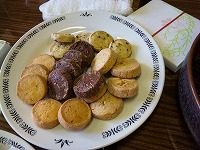岩茶お掃除の影響で肩から腰にかけて、全体的に痛い上海小町デス。っは!それって、体の裏半分が痛いってことよね?結構辛いデス・・・。そんな小町の茶葉掃除熱のきっかけとなった美人会。碧眼猫さんとteaさんの企画に招待して頂きました♪東方美人を飲み比べるという趣旨の会なのですが、会場には美人会と、それはそれは、入るのにちょっと恥ずかしいご案内が・・・。写真撮るの忘れました(笑)。小町が来てから立て続けにお客様がいらっしゃり、持ちよりのお菓子をもぐもぐ。交代で東方美人を淹れてごくごく。右下の写真、うんか3つで、3つ星ならぬ、3うんか(笑)。5うんかもありました。飲みました。その差はやっぱりうんか2つな感じでした。↑分かんないよね、この説明(笑)。こちらは碧眼猫さんお手製のにゃんこクッキー。そして、先日京都で入手したにゃんこ飲杯。(岩茶会の入場料代わりに購入して頂く飲杯の中にあります~)画像が小さくなってしまいましたが、上記2列が朝からいた方が飲んだ分。小町は途中からでしたが、結構飲みました。作り手、仕入る方、買う方でそれぞれ好みが分かれ、その味わいの差がはっきりわかりました。面白いですよね~。楽しい会へご招待、ありがとうございました。来年もお願いしま~す♪