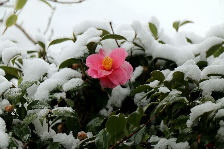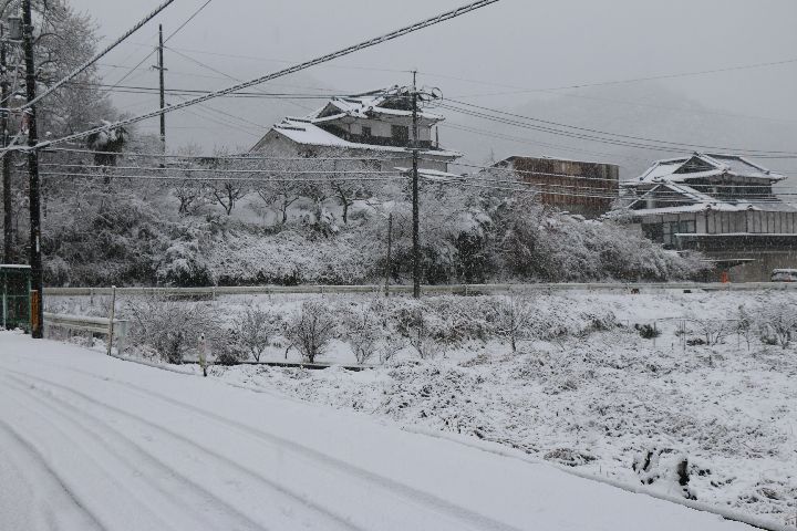 先週に続き 今日も 雪になった。先週ほど 積もっては居ないが 今 3センチほど。しかし まだ 降り続いている。