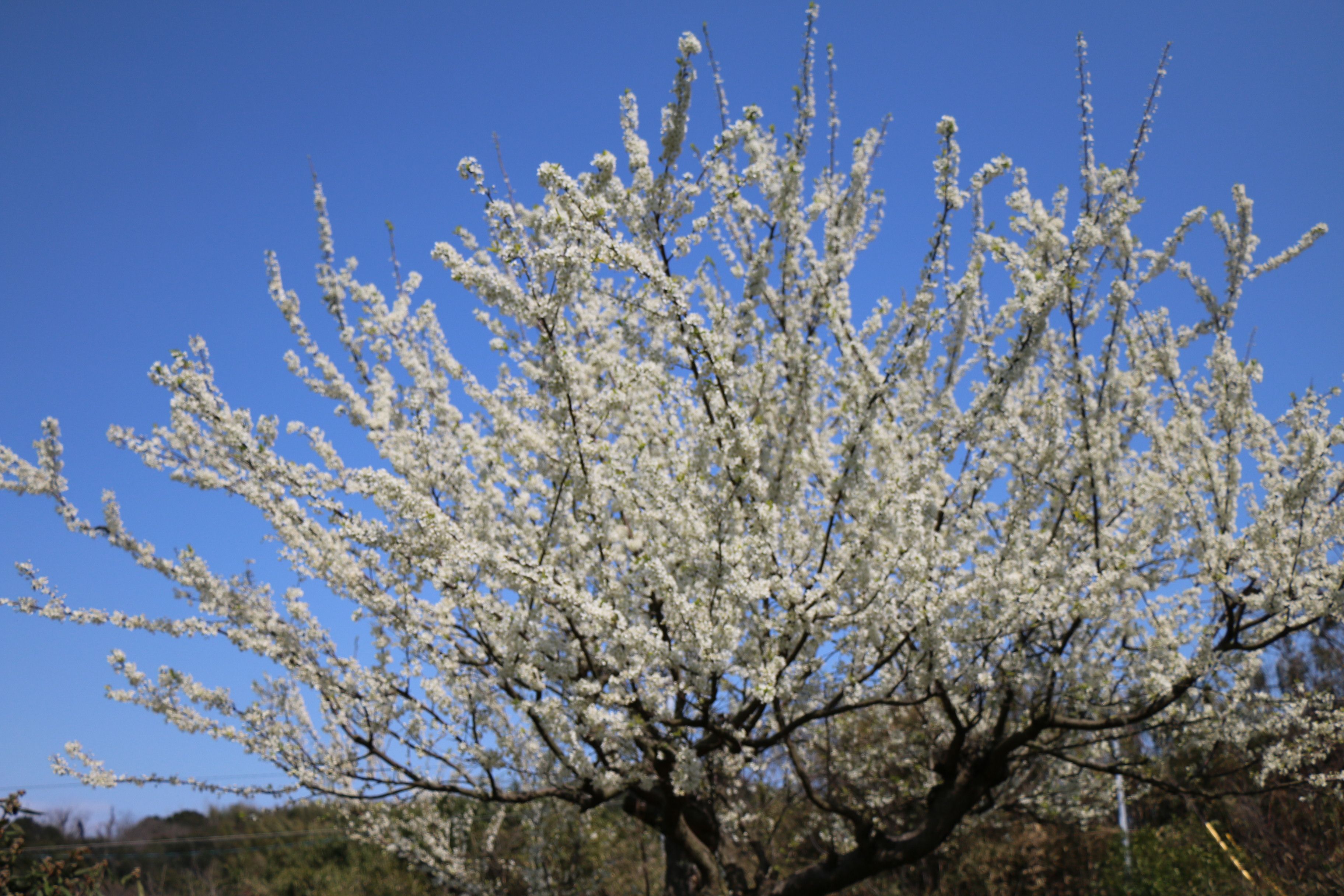 4月に入り スモモの木は 春真っ盛り見事に花は咲き誇るが 実は あまりならず。例年 同じ状態が 続く。