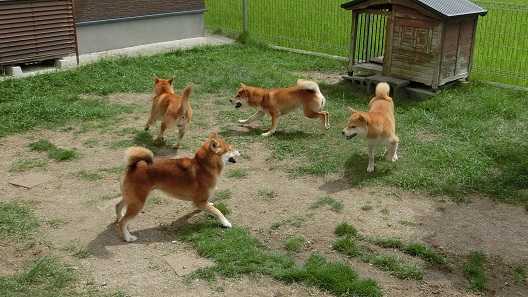 昨日の続き。この日は午前中に将がやって来ることとなっており、楽しみにしていた日曜日でもありました。こちらは将の姿が見えて、大喜びする女衆の様子。「母ちゃん、そしてみんなただいま~♪」って感じでにこやかに面々に挨拶にやって来た将を「将、いらっしゃい。アンタも日々ご家族と励んでるみたいね♪後で鍛錬の成果をオバちゃん達に見せてちょーだい(楽)」そんな言葉でも掛けながらかつての指南役であったナナを中心に女衆が歓迎する光景が印象的に映ったひとコマでもありました。その後、穏やかに再会の挨拶を交わした将と我が家の女衆の庭遊びを眺めながら、こちらもパパさんと犬バカな話から世間話までたくさんの話題に花が咲いておりました。今回もまた指南役のナナが見守る中、未来とハルが将の相手を務めるかたちで庭遊びがスタートします!のっけからふたりの勢いに押されっぱなしの展開にすっかりタジタジ状態の将。見かねたナナが場の収束に向け出動するも、喜び勇んでしまったミイに至ってはすっかり糸の切れた凧状態♪でなかなか歯止めが効いていない様子に見えてしまいます。(笑)そうこうするうちにコーナーに追い詰められ、ミイの繰り出す攻撃に防戦一方状態に陥った将の状況を察し、「こらっミイ、そんなに相手のことをやり込めたらダメでしょ!将叔父ちゃんに遊んでもらえなくなるわよ。」って感じでハル母ちゃんが未来の首根っこを捉えてお灸をすえることで遊びの仕切り直しを図り、一旦は将も気を取り直し遊びの輪に加わる様子を見せるも、再びミイに追い詰められていく将。その後も「ミイ、アンタ何度言ったら分かるの!『ちゃんと空気を読んで楽しく遊びなさい』って言ってるでしょ!!」って言わんばかりに再び娘に言って聞かせている様に見えるハルの傍で「将、何、しおらしくなってんのよ♪アンタ、男でしょ!」といった面持ちで檄を飛ばすナナの姿が見られました。そうしたやり取りを繰り返すうちに、遂にすっかり意気消沈した様子で白旗を上げた将。こちらはひとり佇む将のことを一定の間を取って眺める3匹の様子。「『参りました』って言っちゃったら遊びにならないじゃないの~。もうつまんないの」って感じで思わずボヤきが出る娘に「世の中、アンタみたいなのばっかりだったら、喧嘩だらけになりそうね♪将叔父さんは自分のことをよく分かっていて、アンタと違ってオトナなんだと思うわ。ミイはそういうトコをちゃんと叔父さんから教わることね♪」とでもハルは諭してくれていたりするのかな??そんな楽しい想像を巡らせながら私もまたその様子を眺めていました。(楽)程なくしたところで、ミイが再び将のもとへとやって来て遊びの催促を始める素振りを見せます。ハルやナナの指導、そして将の背中を通してミイもまた何かを得たんでしょうか?今度は割と将との間を図りながらやり取りをしています。すると、ふたりの空間に賑わいが生まれ、やがて群れ全体でお互いに楽しみながら庭遊びが繰り広げられていく光景へと4匹を取り巻く状況が様変わりしていきます。こうして再会して練習に臨んだり遊びを経験することが犬達にとって良き刺激となりお互いに成長していく機会となってくれていればいいな、今回も思わずそんな楽しい想像を浮かべてしまいます。面々との遊びがひと段落したところで、今回も練習に臨んだ将を一枚。これまでひとつひとつ課題をクリアし、そして現在の将の課題についてもまた理解されている様子のパパさん。こうして将の姿を目にしていてもまた、未来志向で将との生活を楽しみながら日々取り組んで頂いているご家族の様子が窺える様な気がして私たちもまた本当にありがたく感じています。将、今日は遊びに来てくれてホントにありがとね。これからも日々是鍛錬!体づくりに頑張るんだぞ!!そしてまたいつでも遊びにおいでね、将がやって来るのをみんなで楽しみにしてるからね♪