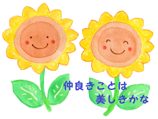 「仲良きことは美しきかな」 武者小路実篤の言葉ですね。ごく普通の事ですが、それが中々難しいのです。。。みんなが望んでることなのに。夫婦も家族も友達も仲良く出来たら平和に繋がりますね。