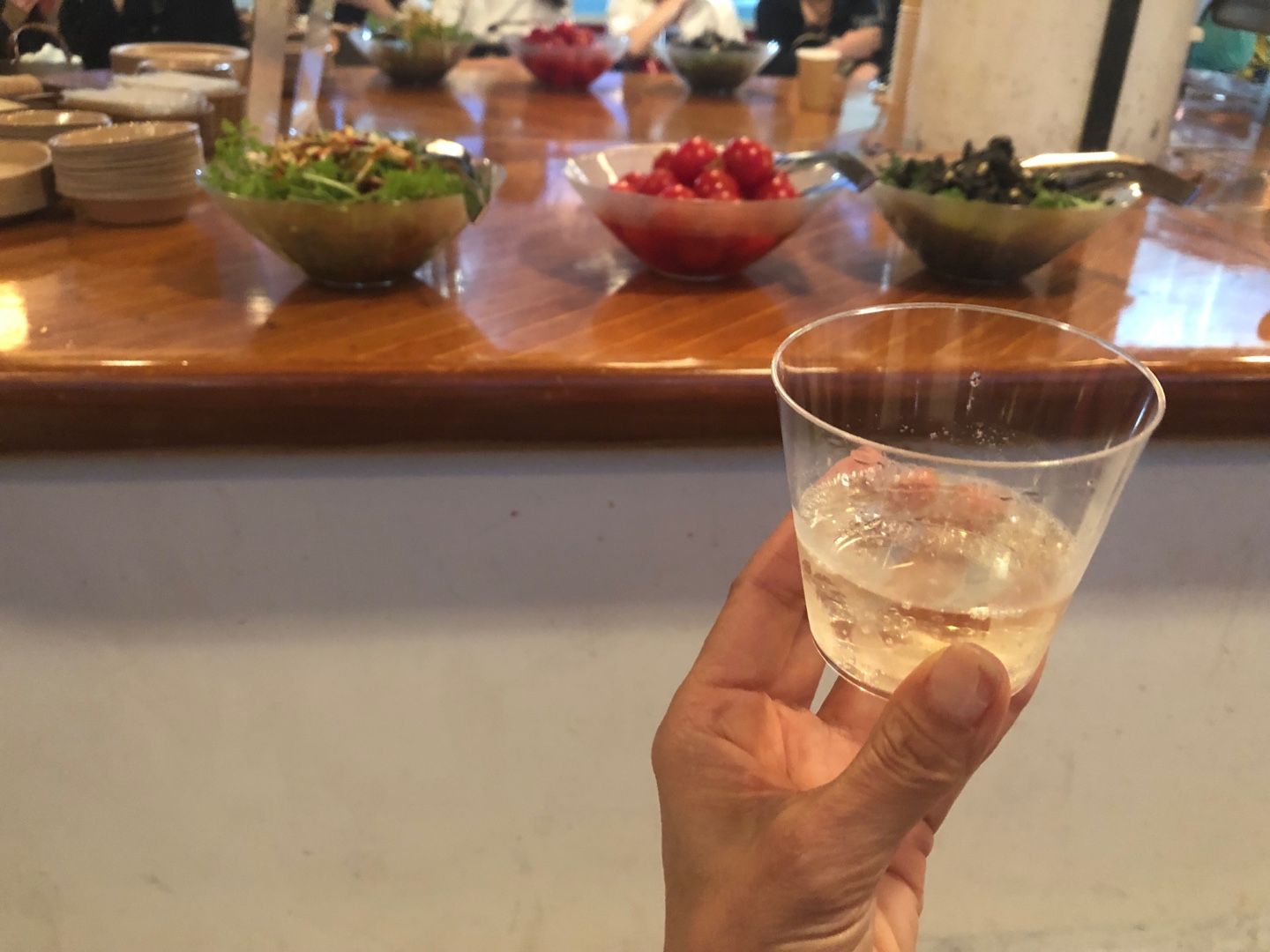 まずは、料理の紹介。自由が丘?のレストランのビュッフェ形式アンチエイジング食って事で、ウェルカムドリンク、飲み放題付きは嬉しい😊