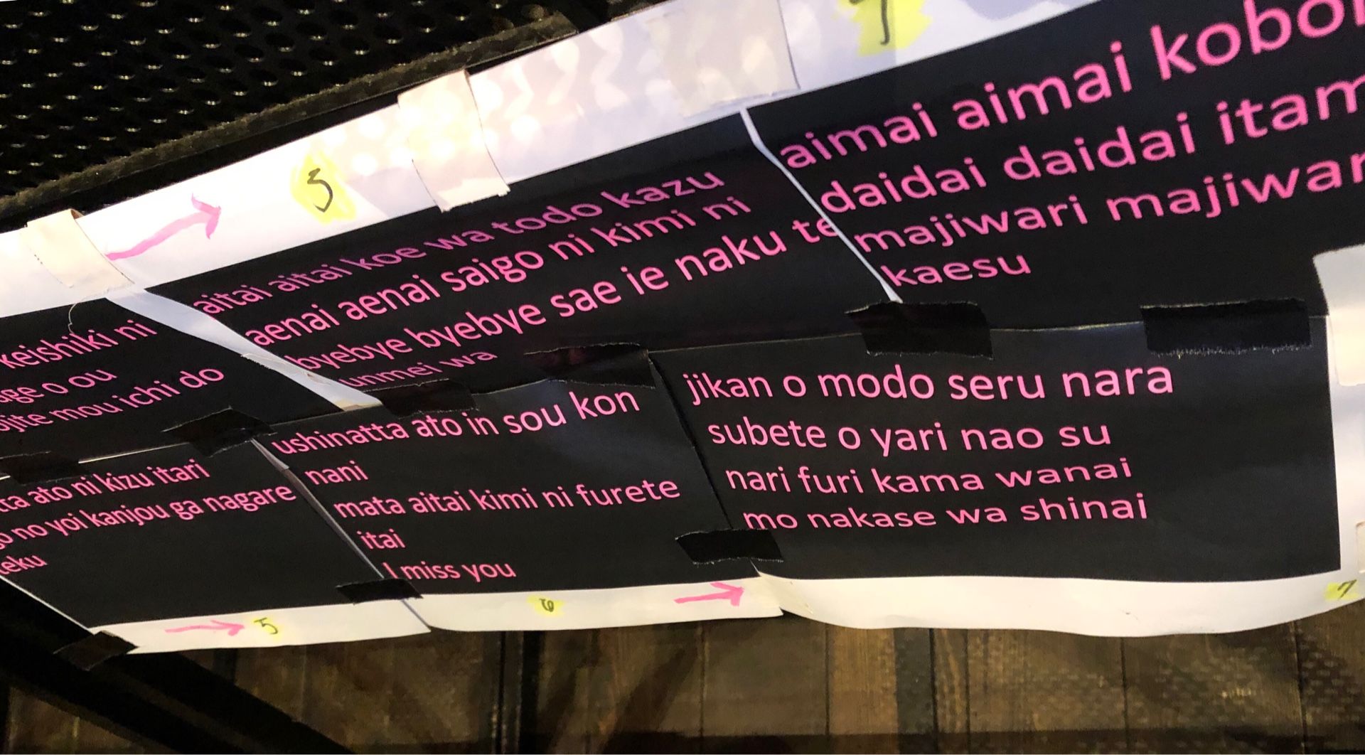 枚以上舞台前方いっぱいに貼った。歌い終わってファンに聞いた。「日本語は難しいね。ちゃんと歌えてた?」