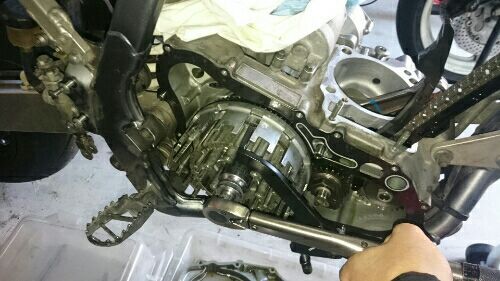 DRZ400SMのエンジン組立に入りました。 シリンダーヘッドのバルブシートカットとすり合わせは、レースでお世話になっているバナナハンズへお願いしてきました。 その間、何もしないのも勿体ないので、出来るところまで組立てちゃいます。 カムチェーンを付けてクラッチスリーブハブの組み付け。 クランクケースカバーを付ける前にハブを組みます。 逆をやるとハブが付けれません。 はい、逆をやらかして気付きました。 そしてクランクケースカバーを付けた後、クラッチプレートの組み付け。 ジムカーナ遊びなどでハンクラを多用した割には、クラッチプレートへのダメージがなかったです。 クラッチプレート関係も買っていましたが、磨耗も焼けもないので、そのまま使います。 そして、これが新品のクラッチカバー。 なんとマグネシウム製でした。 コレを組み付けて、本日の作業終了です。 今日のクラッチ周りの作業は、どのバイクも同じ構造なので、難易度は低いです。 次の作業は...........年末休みに入ってからです。 それではまた!
