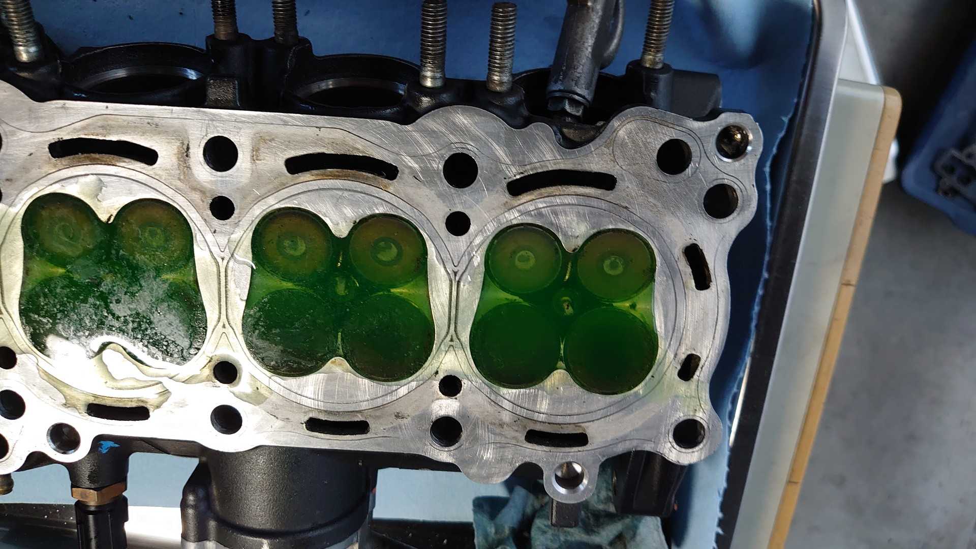 あとはバルブを外して、バルブとバルブシートのあたり面がどうか点検です。