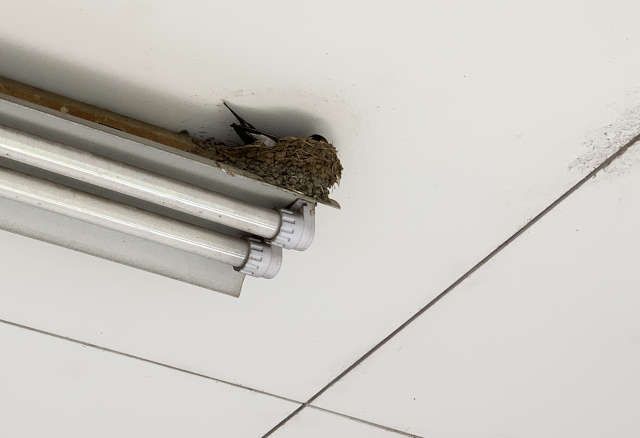 構内のツバメはまだ抱卵中のようです。iPhone XS Max/Halideで撮影したものを、切り取って載せました。