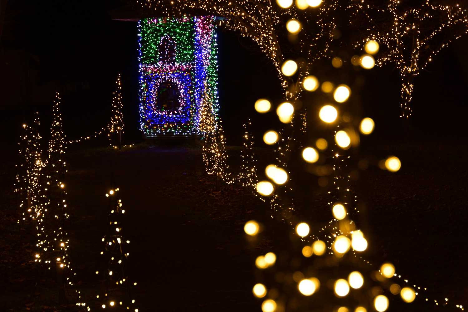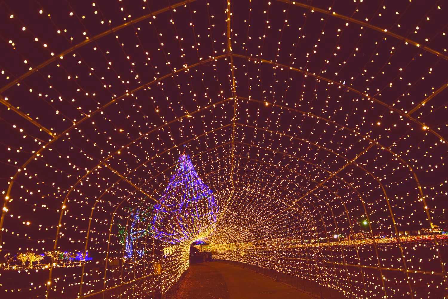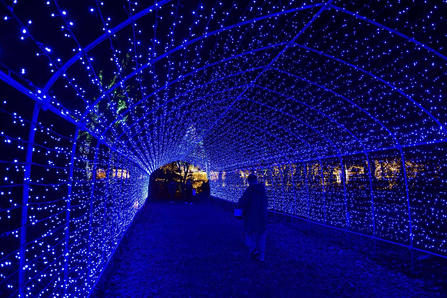 木の隣にある、光のトンネルを抜けて、さらに歩きます。