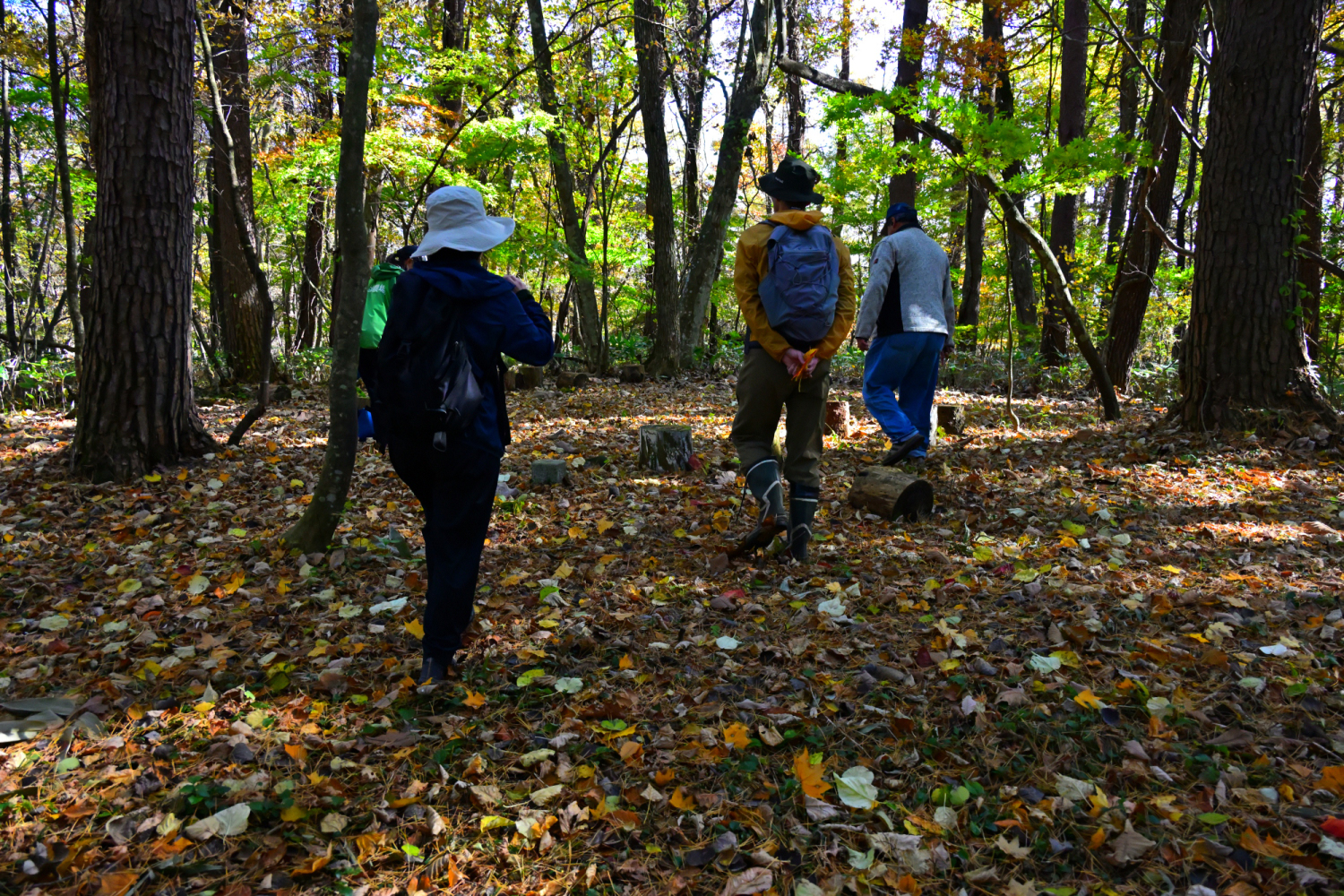 このあと、ここで狼森の童話をガイドの斉藤さんが読み聞かせ。