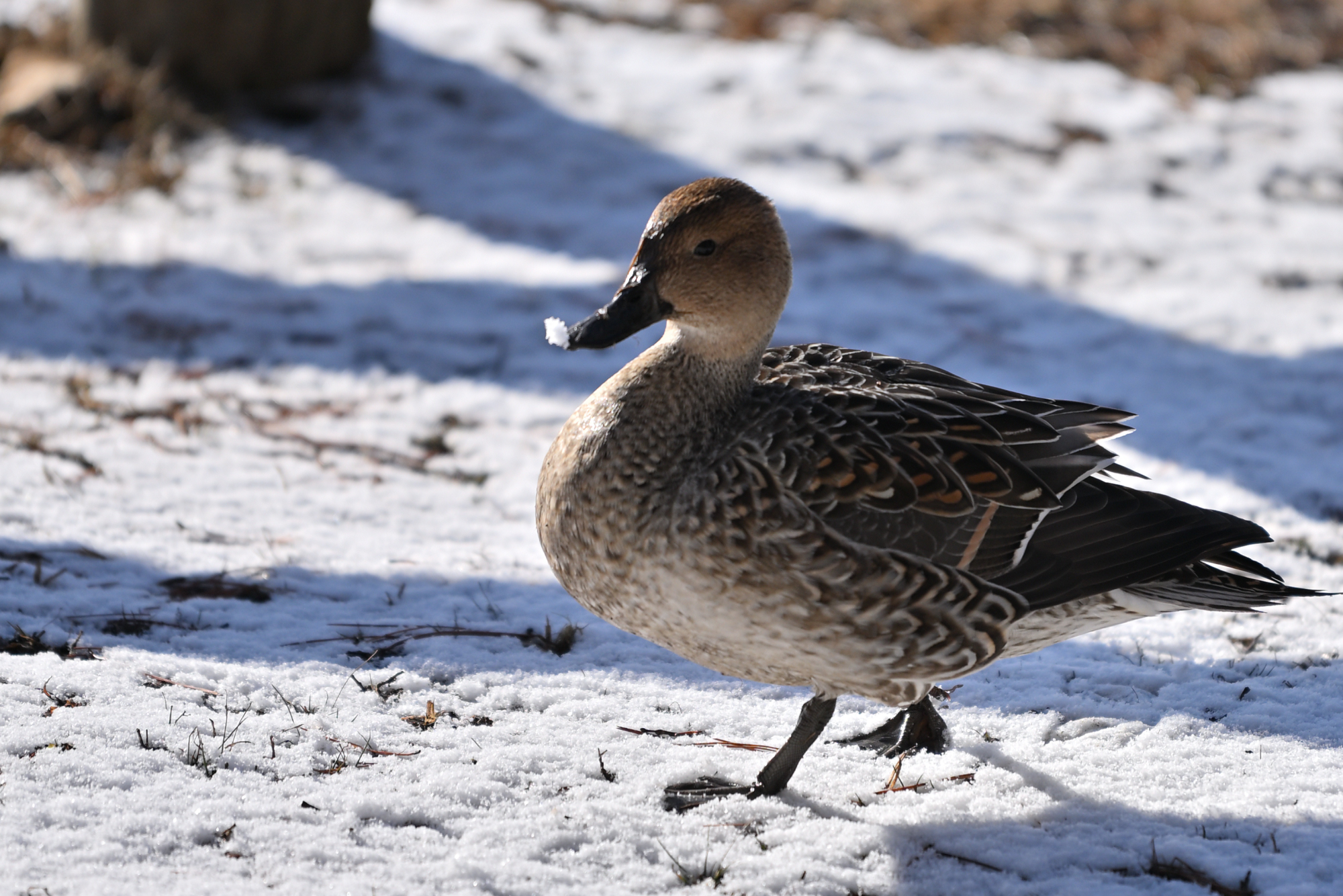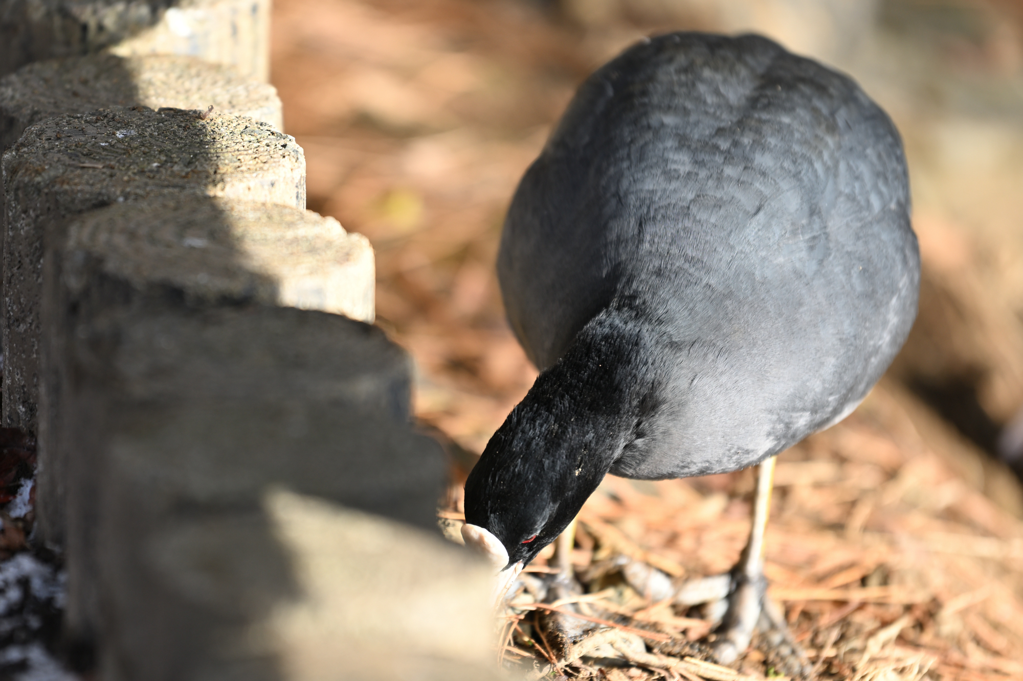 今じゃ縄張りあるのかな、カモに負けじとエサつついてました。