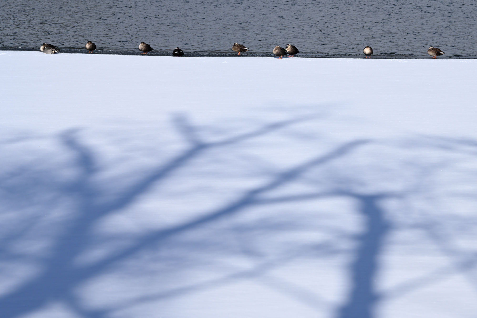 この日はハクチョウはとても少なくてカモたちがのんびりと。