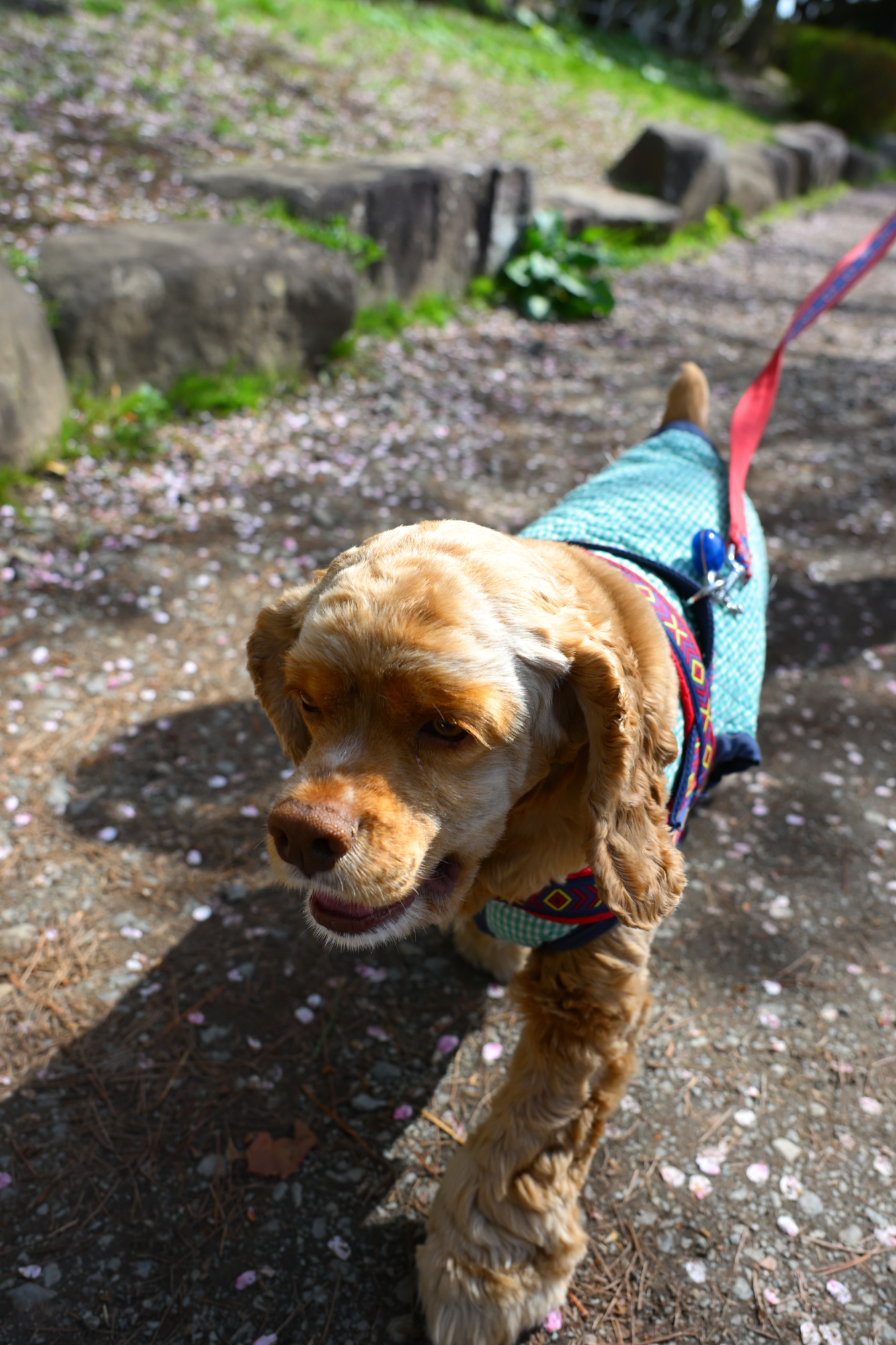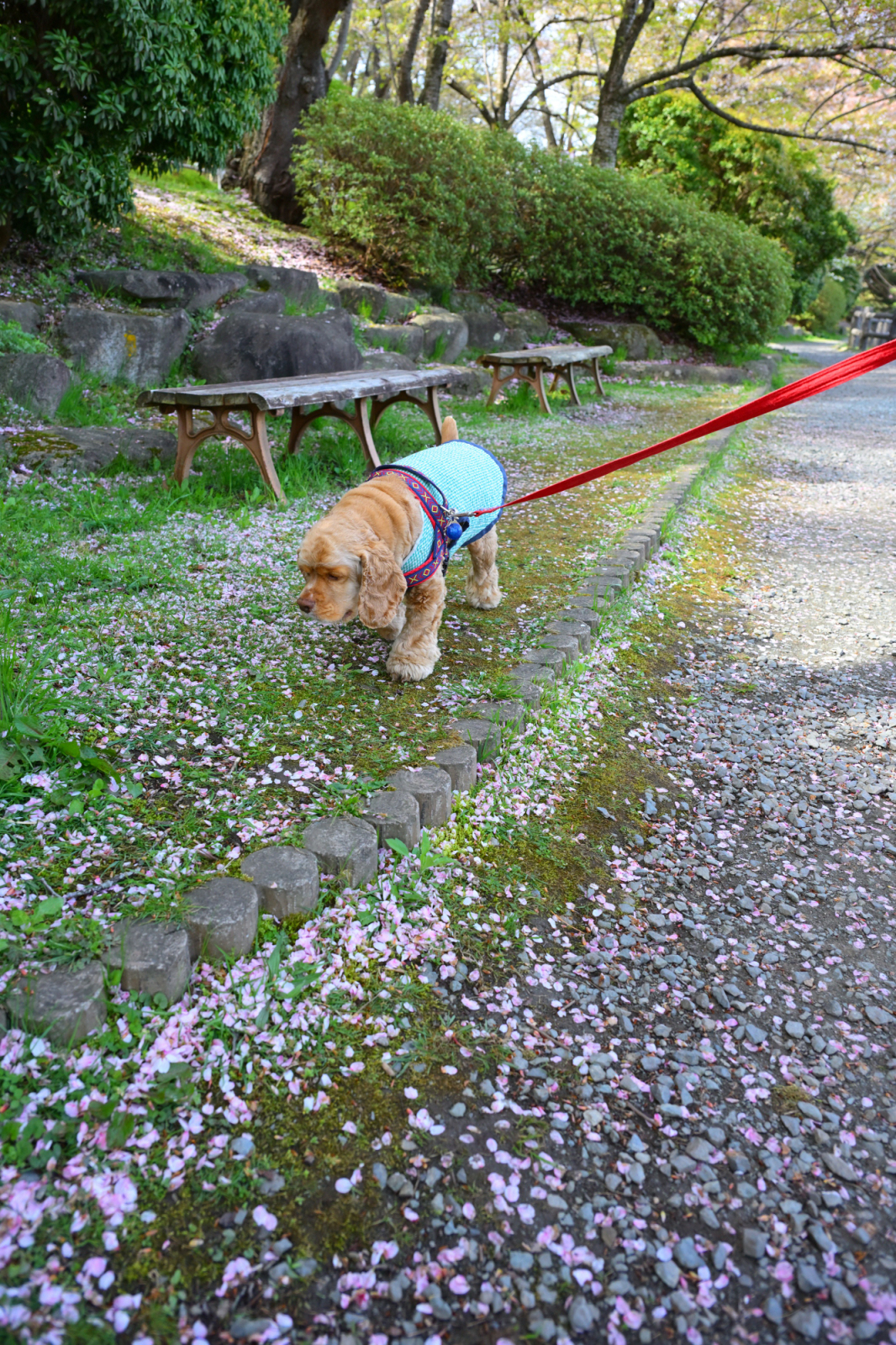 桜が散った散策路を歩いています。