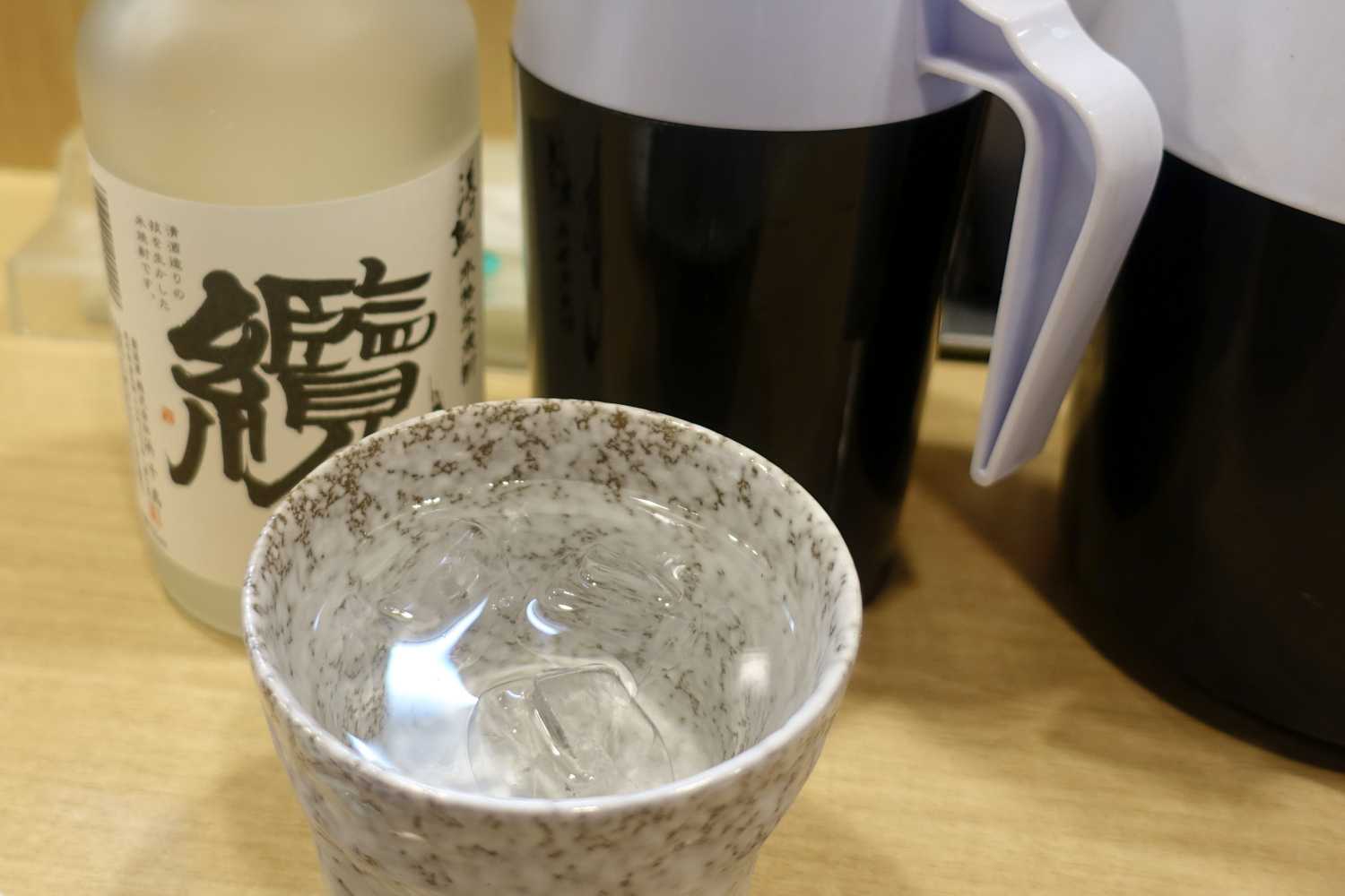 キープしてた米焼酎纜(ともづな)を出して水割りで。