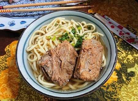 写真は数日前に自宅で食べた「ソーキそば」です。