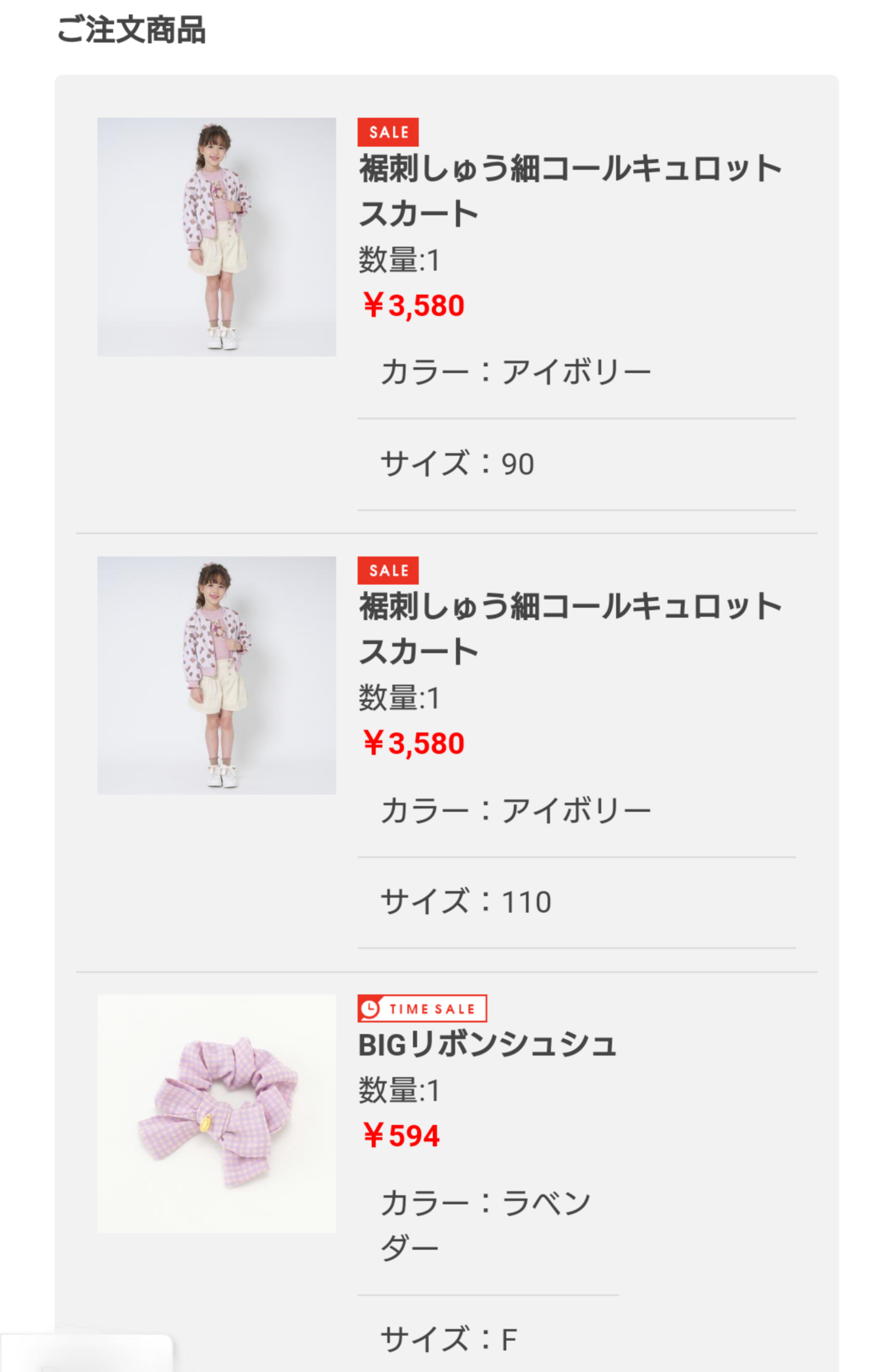 ナルミヤさんファイナルのときから、何か買おうかな~どうしようかな~と悩んでいるうちに、当然どんどん売り切れいくのですが、ついに今日ポチしました😅長女お誕生月の500Pもあったし、久しぶりに公式さんにて。以下5点です。メインはこちらのボトムスかな?メゾピアノ(mezzo piano)裾刺しゅう細コールキュロットスカート姉妹お揃いで春秋でも履けそうなショーパン探してました!20%offで3000円切るのでなかなかアリです👍️あとは小物類。長女に。プティマイン(petit main)BIGリボンシュシュ次女の療育の進級式のワンピに合わせます。メゾピアノ(mezzo piano)梵天つきハイソックス 【日本製】アフィ出ませんが、ベリエちゃんのハンドタオルは長女に。以上5点、総額8914円+送料380円-複数割1782円=総額7512円のお支払いでした!(そこからお誕生月ポイント-500円)吟味に吟味を重ねたらかなり遅くなりましたが、無事ポチ出来て良かったです!本当は春物も欲しかったけど、今回は予算の都合でちょっと見送りです…🌀