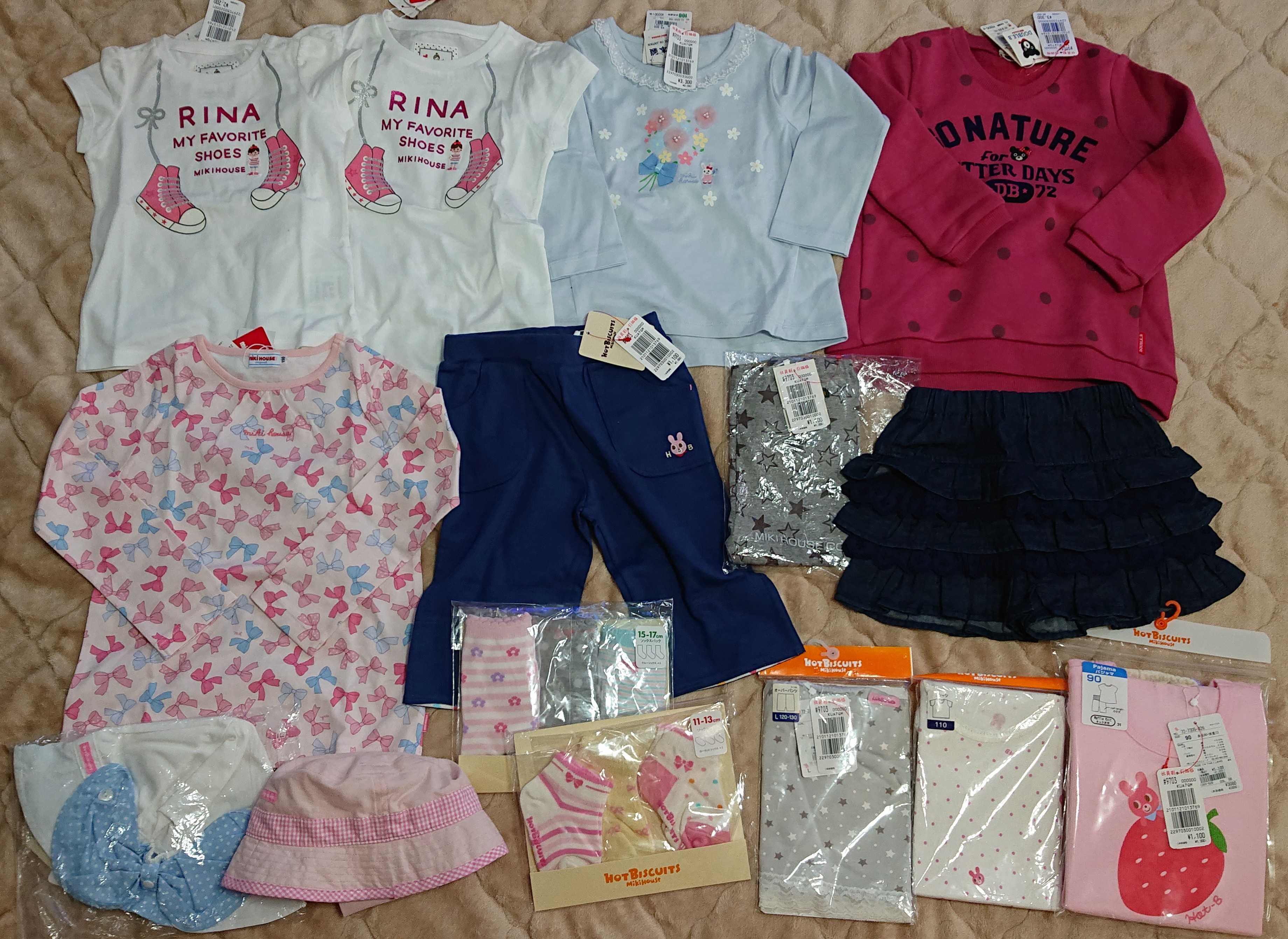 昨日はナルミヤさんのファミセに初参戦しましたが、本日からは我が家はオンワードです(笑)🤣2日連続、次女にはファミセにお付き合い頂くことになり…。今日も次女のご機嫌的に一時間がリミットだと思ったので、ほぼミキハウスに絞って見ることにしました!今朝は普段なかなか起きない子供たちが30分以上早く目が覚めたようで、スムーズに朝の支度が出来たのです。長女を幼稚園に送り(普段ゆっくり行くのに、今日はなんと一番乗り🤣)会場に到着したのが8:20。既に130~140組並んでるよ…。(もちろん皆さんがミキハウスに行く訳ではない。)なんだか回を重ねるごとに皆さん並ぶの早くなってない?まだ次女が産まれる前だったかな?初日ではなかったですが、朝8:30に到着したら2人目だったことがあります。今はそんな感じではないのね。前半の列の皆さんはレジャーシートや折り畳みイス持参で万全です。*開場は9:00ですが、大体初日は8:40~8:45には開きます。この日は8:40オープンでした。順番にエレベーターに乗って行くので、私のところからだと多分、1番にミキハウスコーナーに辿り着いた方から7~8分遅れでの到着となります。とりあえずB級品を目指しました。2200円や3300円の均一は今回もなくなり、普通のミキハウスランドなどと同じお値段でした。お洋服のB級品ワゴンの後ろに、小物のB級品ワゴンもありました。ある程度物色し終えたら正規品コーナーへ。正規品は前回はほぼ50%オフでしたが、今回は大体30%オフでした。30%なら楽内で買った方がいいのよ。B級品も均一価格なしで、正規品も30%ならミキハウスランドと同じですね。そっかぁ、今回はそんなに買うものないかなー…。ちなみにB級品は、ワゴンの下の段ボールに在庫がまだ保管されており、ある程度ワゴンが減って来たらどんどん追加されていましたよ。私は結局40分くらいしか滞在しなかったのですが、その間にも2回補充されてるのを見ました。もしかしたら2日目、3日目に行っても、初日にお見かけしなかったものに出会えるかも?と思いました☺️(あくまで私個人の予想です。)正規品コーナーはお洋服、シューズ、パジャマ、小物類などのほか、季節柄水着や甚平のスペースもある程度取ってありました。ホットビのサマパも、春のミキハウスランドと同様に中身が見える状態で販売されてました。サイズ見てくるの忘れたな…。ランドでも110までしかなかったので、今回も120はあるかどうか怪しいです…。 *さて、前置きが長くなりましたが、本日の購入品です。どん!本日は全部B級品です。以下、全て税込で記載します。MHリーナちゃんT 90 7260円→2200円MHリーナちゃんT 110 7590円→2200円MHうさこロンT 100 10120円→3300円DBトレーナー 100 10780円→3300円MHリボン柄ロンT 110 5280円→1100円HB紺6分丈パンツ 110 3960円→1100円DB☆柄レギンス 90 2750円→1100円MHフリルキュロット 90 7920円→2200円HB水色帽子 M(50-52) 4950円→1100円HBピンク帽子 46cm 4180円→1100円HBソックスパック 15-17 1100円→440円HBソックスパック 11-13 1100円→440円HBオーバーパンツ L(120-130) 1650円→660円HB半袖肌着 110 1540円→550円HB半袖パジャマ 90 3080円→1100円以上15点、総額21890円のお買い上げです!アレオカシイナ…ソンナニカウモノナカッタンジャナイノ…。*リーナちゃんTシャツはアフィありません。品番12-5210-95990/110で唯一、お揃いで買えたものです。実物見て可愛かったし真っ白のシャツって手持ちに一枚もなかったので、2200円ならいいかなと思い購入しました!今回唯一のうさこ。(ワンポイントだけど。)うさこもプッチーも、B級品はほとんどお見かけしなかったかなぁ。(定価9200円+税をSALE)ミキハウス(mikihouse)花束うさこ 長袖Tシャツ日本製(90cm、100cm)普通に可愛いので、これは普通に着せます!ダブルビー普段あんまり買わないんですが、やっぱり実物手に取ると可愛いですよね💕限定セール定価9800円+税をSALE)ダブルB(DOUBLE.B)mikihouseBちゃんトレーナー(100cm)これも3300円なので買っちゃいました。安いからってすぐ飛び付かないように気をつけてるけど…。まあ長女服(←少なくとも義務教育が終わるまで、週末しか私服着ない)ならともかく、次女服ならセーフです。(←何が?)これも実物初めて見ました。ただのエブミキかと思いきや、ミキハウスのロゴは刺繍なんですね。【秋冬アウトレットセール】ミキハウス(MIKIHOUSE) 総柄長袖Tシャツ(80〜130cm)可愛すぎて置いて来れませんでした。むしろ次女サイズも追加で買おうかなと思ってます。ジャンスカのインナーにも素敵✨(もうお揃いで着せられるジャンスカのサイズがほぼないんですけど…。私も思います!せめて120までは展開して欲しい!)よくあるホットビのパンツ。ミキハウス正規販売店/ミキハウス ホットビスケッツ mikihouse キャビットちゃん6分丈パンツ(80cm・90cm)手持ちのホットビのボトムスが、ショーパン?キュロット?タイプしかなかったので。これも次女サイズ足して、今年の外遊び用にしようかなと思います。ダブルビーのレギンスはアフィありません