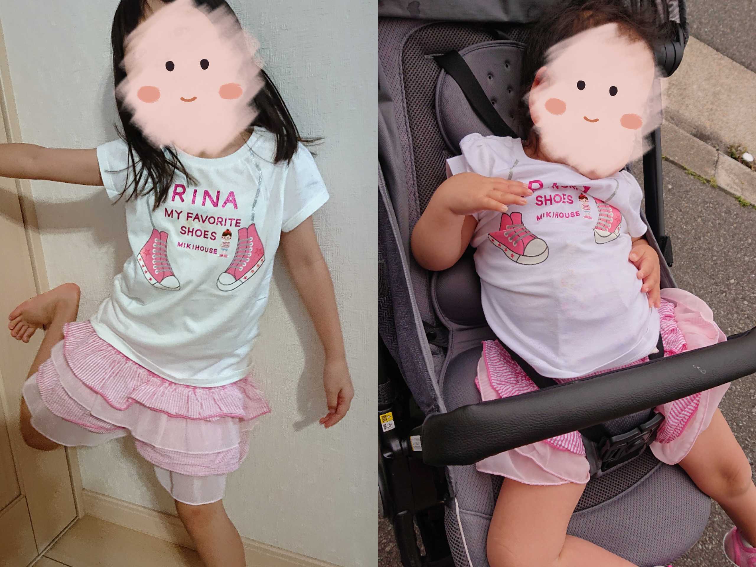 GW前半戦の3日間は、天気悪い日が多かったですね💦半袖のサイズ感を見たかったので半袖を着せたかったのですが、天気悪いから肌寒いかな?と思いつつ、ほぼ室内で過ごすことになるので半袖でいけると踏んで(念のため羽織を用意)3日間とも半袖を着せました😅3日間全て、90/110を着せてみました!*1日目この日はワンピースのサイズ感を確認。※ミキハウス(おススメ)mikihouseポッケにうさこ♪重ね着風ワンピース(日本製)(80cm、90cm)ミキハウス正規販売店/ミキハウス mikihouse Every Day mikihouse 裾フリル 6分丈パンツ(70cm-150cm)このワンピは旧バージョンのデザインですが、我が家は今年初おろしのおニューです✨全然キツそうじゃないしいい感じ🎵今年の夏中は着られそうかな?レギンスは昨年から引き続きのものです。2日目この日は普通のTシャツと普通の膝丈パンツのサイズ感を確認。並んで撮れなかったので、並べて加工。ミキハウス正規販売店/ミキハウス mikihouse 半袖Tシャツ(80cm・90cm)【セール30%OFF】【メール便OK】【MIKIHOUSE ミキハウス】プッチー☆チェック&ドット♪6分丈ストレッチパンツ(80cm・90cm)この日の服装は、上下ともに昨年から着せていました。着れるんだけど、Tシャツの身幅が結構ジャストです。ボトムスもちょうどいいかな?ちょっと膝を曲げると短いような…まあ、でもボトムスってこんなもんだと思います。3日目この日はチュニックのサイズ感を確認。【夏物アウトレットセール】ミキハウス(MIKIHOUSE) うさこ♪プチフラワーフリル半袖Tシャツ(100、110)【24日〜ノベルティ対象】【セール30%OFF】 ミキハウス mikihouse 7分丈パンツ ボトムス パンツ ストレッチ 刺繍 いちご レース かわいい ベビー キッズ 子供 女の子 (80-100cm) 【12-3208-578-80】チュニックも旧バージョンですが、ほぼ今年初おろし。(長女だけ昨年、一回だけ着た。)サイズ感、全く問題ありません✨ボトムスは先日夏フェアで購入したもの、早速おろしました!裾のフリルが可愛すぎます🍓2日目のトップスといちご繋がりなので、この組み合わせで着せるのもアリですね!サイズ感も申し分なし。*というわけで、ワンピ、チュニック、ボトムスはサイズ的に全く問題なさそうなので、今夏いっぱいは90/110でいけそうです。問題は普通のTシャツが、ちょっと身幅どうかな?まあ普通に着られるんですけどね。そもそもTシャツって、身幅ちょうど気味に作られてるもんだし。様子見ながら、夏の後半には一つずつサイズアップにも挑戦してみます!そして明日は平日のため、我が家は全員通常運転💦またGW後半戦のお洋服は、写真撮って記録したいと思います☺️