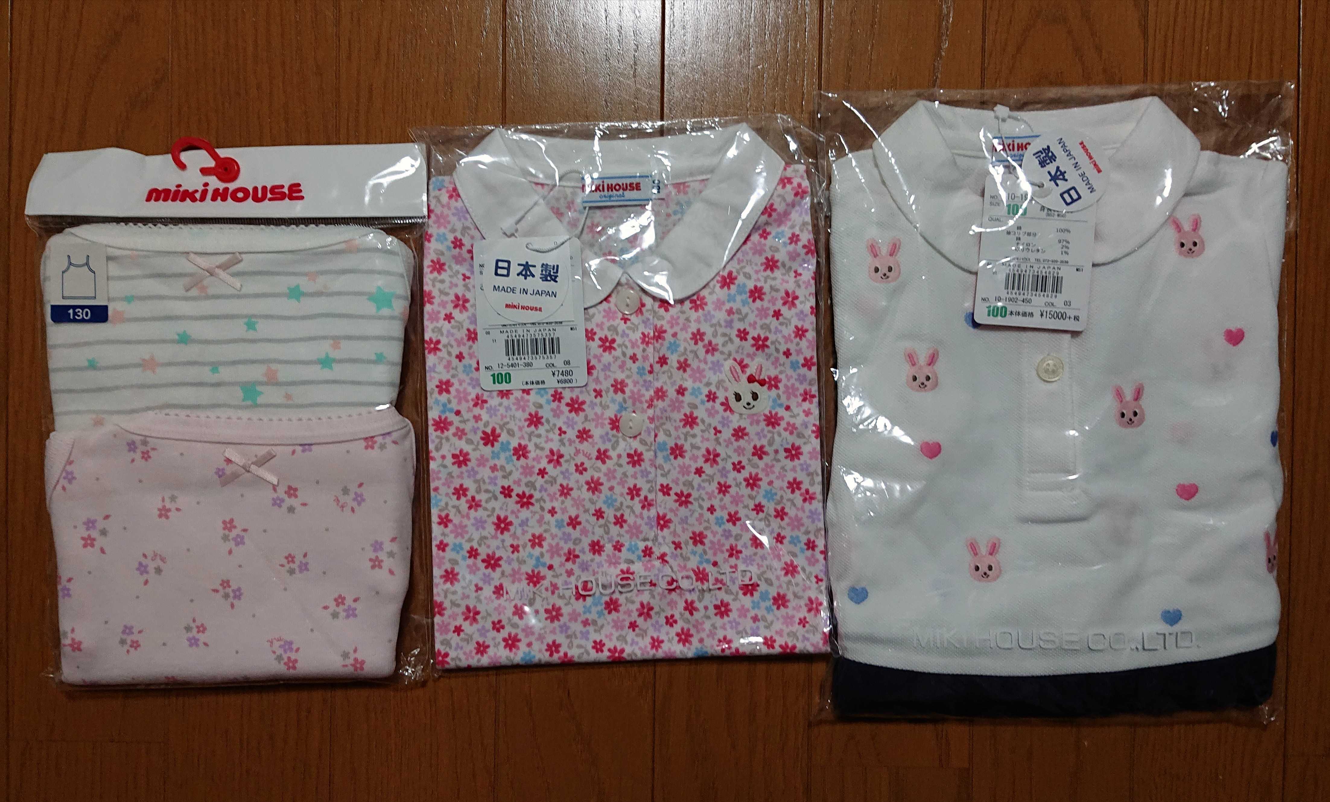 ノンさんで時報ポチした半額品など、早速到着しています!全部で3点。こちらです。わーい🙌色々欲しかったものお迎え出来て嬉しい😃💕*メインはこれですかね?プチうさこカノコワンピ♥️(MD/30%OFF)ミキハウス mikihouse うさこプチ刺繍入りカノコワンピース(80cm・90cm・100cm)ノンさん売り切れのため、アフィはママプレさん。我が家にもようやく、カノコワンピがやって来ました!お色味的に赤や黄ほど派手さはありませんが、うさこいっぱいで可愛いです。写真撮り忘れましたが、前だけじゃなくちゃんと背中側にもうさこいっぱいなのが嬉しい🎵100センチ、少し大きめだけどもう着せられそうかな?😊半額ブラウス、100センチ。これも密かにずっと、着せたいと思っていました。80センチのみ、まだあります。【決算セール50%OFF】【半額】ミキハウス MIKIHOUSE 花柄半袖ブラウス【日本製】【キッズ】【べビー】【メール便可】これ確か、春のミキハウスランドのデイリーウェアコーナーにあったんですよね。そのときも半額だったかな…?3000円台だったことは記憶していますが、その時は他にも買いたいものがありすぎて、置いてきてしまいました💦結果論ですが、同じ半額ならポイント付く楽天で買えて良かったです。これは次女さん、もう着られそう!そろそろサイズアウト気味のお洋服と、サイズアップのお洋服を入れ換えたいのですが、時間がなさすぎて全然進まない…😱そろそろ100/120もおろしていきたいんです。。話逸れました。最後に肌着の130センチ。【決算セール30%OFF以上】ミキハウス MIKIHOUSE キャミソール2枚セット(肌着)【メ-ル便可】【キッズ】【ベビー】こちらは半額品ではありません。でも大きいサイズがお得に買えて嬉しいです!同じお値段でダブルビーバージョンもあります。【決算セール30%OFF以上】ダブルB(ミキハウス) Double B by MIKIHOUSE ドット・アイス柄キャミソール2枚セット(肌着)【キッズ】【ベビー】【メール便可】【アウトレットセール】肌着も新作は軒並み値上げされているので…このお値段、サイズがあればお得だと思います✨*とりあえず直近の目標は、もう着られない90/110を下げて、新たに100/120のお洋服と交代させること。まだ着られる90/110もあるから、それと新たな100/120が混ざらないように保管すること。着られない90/110は、90はお蔵入り(お譲り)に仕分け、110は2年後次女単独で着られるように忘れず失くさず保管すること。今夏おろさない予定の100/120は、来年忘れずに出せるよう分かりやすく保管しておくこと。…を、やりたいと思っています(笑)🤣出来れば次の週末までに…。もう山積みで収集つかなくなってるんです…😧