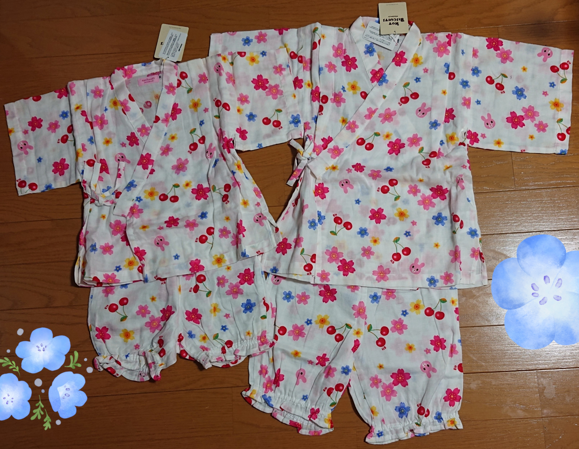 マラソンお疲れさまでした✨ミキハウスは結局ノンさん1店舗のみでしたので、他カテのお洋服多めでしたが。でも、ミキハウス色々着せてました!少し前ですが、次女の療育で夏祭りがあったので、ついにホットビのお揃い甚平をおろしました😍確か購入品紹介の記事では袋のままでしたので、まずは広げた置き画から。やっぱりお揃いは最高♥️特別に家族も招待される行事でしたので、長女も一緒です。色々ぼかしてますが😅着画全体像。サイズもぴったりでいい感じなのですが、次女のズボン部分がハイレグ状態…💦着いてすぐで、いつもと園の雰囲気が違うのでおおはしゃぎして取り押さえられ、着崩れ気味なんです😅もうちょっと整えて撮れば良かったな。上半身像。お揃い着てたら目立ちます☺️ クリアランス☆MIKIHOUSE HOTBISCUITS ミキハウス ホットビスケッツ 二重織ガーゼ☆さくら柄キャビットちゃん甚平スーツ☆:100cm,110cm:72-7520-977ちなみに長女のシュシュも、ミキハウスです。いつの時代のものか分かりませんが、セールで購入しました。小花柄で、ちゃんとmhのロゴ入りです😍*あとは週末。昨年から着てるワンピ、今年も引き続き。【ポイント10倍】〇【ミキハウス】ワンピース9500【3,980円以上で送料無料(国内)】【ポイント10倍】【ミキハウス】ハーフパンツ1900【3980円以上で送料無料(国内)】長女の首にはプティマインのネッククーリング。petit mainプチマインネッククーリングチューブ2022-夏9622414本当は長女と次女に一つずつ買ったんですが、次女が嫌がってギャン泣きですぐ取ってしまい😅長女が2つ付けてます🤣夫の実家でバーベキュー的なのをしました。日陰作って、ずっと扇風機も2台稼働してたけど暑かった…。今年の夏は外遊び控えよ。。。*おまけ着画としては何度も載せてますが…七夕の日です🎋ほぼミキハウス写ってないんですけどね。このだまし絵も今ジャストなので、もっとたくさん着せたいけど。。。ミキハウス正規販売店/ミキハウス mikihouse フェイクプリント半袖Tシャツ(80cm・90cm・100cm)ミキハウス正規販売店/ミキハウス mikihouse プチうさこパンツ(110cm・120cm)たくさん着せたいお洋服ばかりで、全然着せられる日数が足りてません🤣