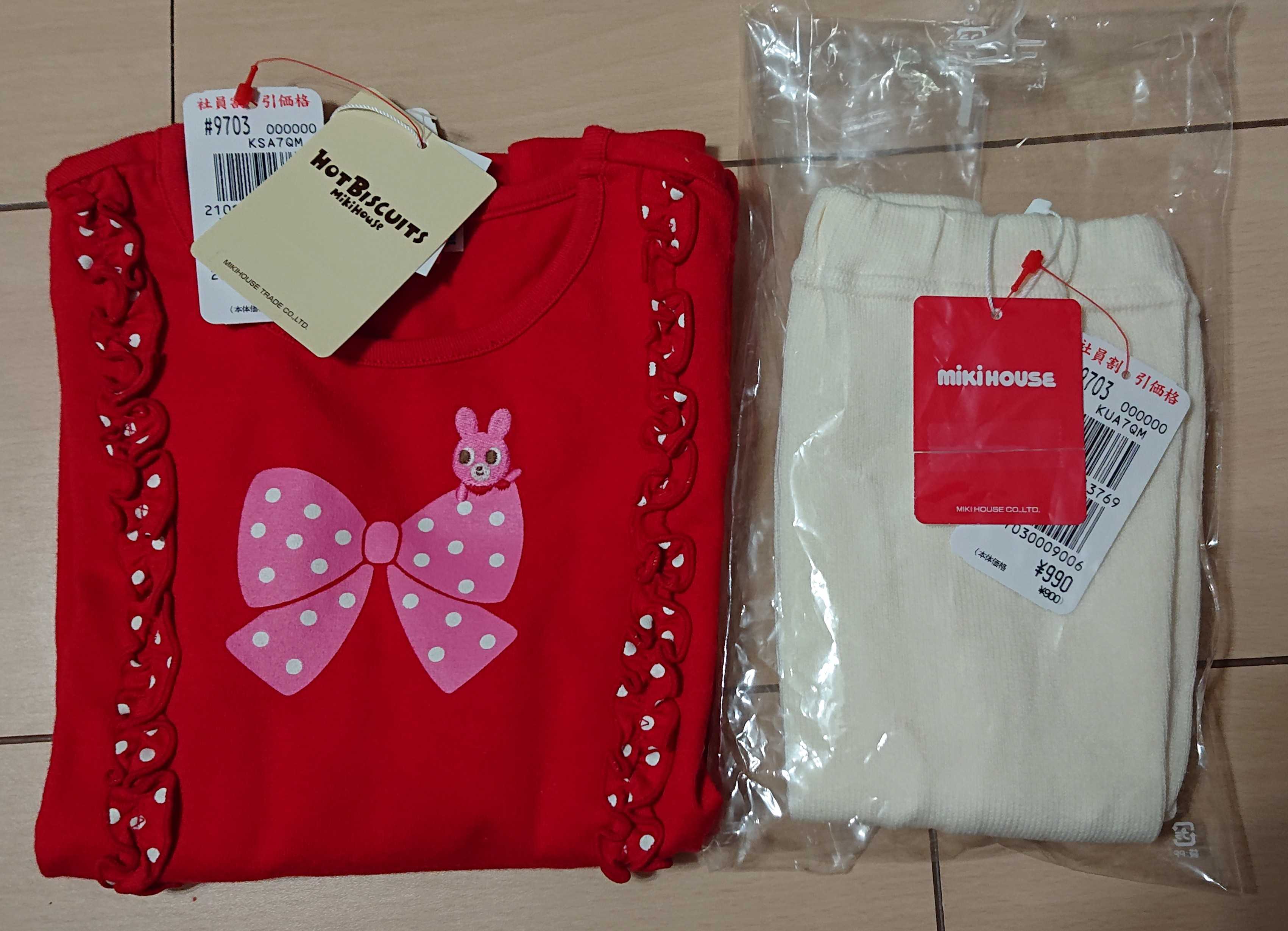 今週は全然行けなかったので、最終日の昼からゆるっと見に行きました。もう全然いいのは残っていないと思ったのですが、B級品ワゴンとホットビ(正規品)のワゴンを中心に見て回りました。本日の収穫は2点です。HBロンT 100 税込4510円→2255円(半額)MHレギンス 90 税込2530円→990円(B級品)HBのロンTは、ベスプラで半額でした。アフィなし、品番73-5203-679。HBのワゴンも基本は30%オフなのですが、たま~にベスプラが混じっているので一つ一つしっかり確認しないといけません🤣これが半額は可愛いしアリだと思ったので、購入することに。レギンスは白の90ですね。【セール30%OFF】【メール便OK】【MIKIHOUSE ミキハウス】うさこ♪ドッドレギンス(80cm-130cm)90次女ギリギリなんですが、多分まだ今すぐなら履けると思うし、うさこ付きのレギンスで1000円切ってたんで買ってしまいました。今年3回くらい履いたら、充分だと思ってます😅レギンスっていつも柄なしのシンプルなの選びがちなので、うさこ付きの初めてかも?たまにはいいですねぇ。今日はエニィファムも少しだけ買いました✨カテを分けるほどは買ってないので、ここにまとめて書きたいのですが、後日記事を見返すときに探せなくなってしまうので、私の都合でカテを分けて次の記事に書きます!次回のオンワードは来年2月頃かなぁ??3ヶ月に一度のワクワク、またそのときを楽しみにしておきます🎵