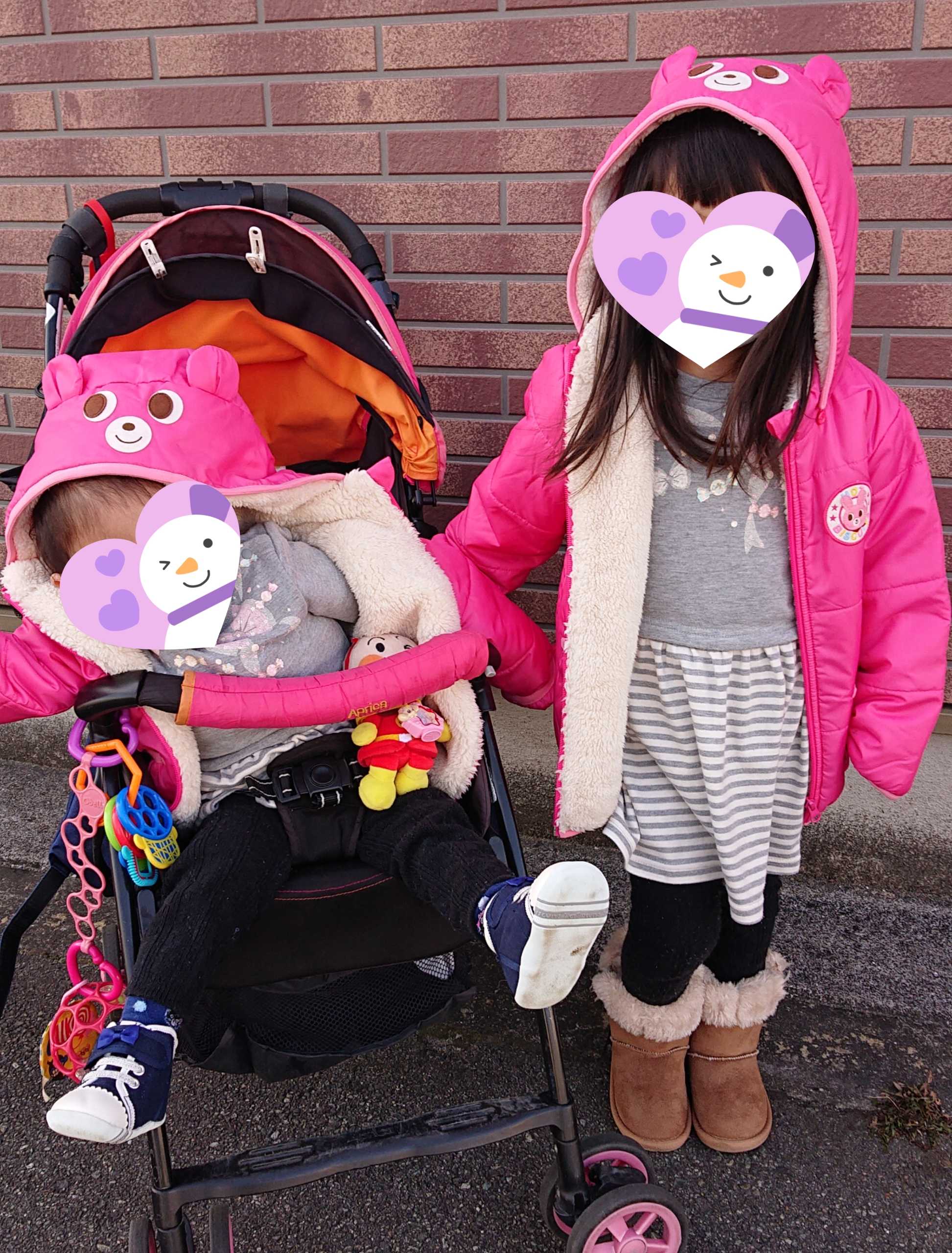 親バカかもしれませんが、このダウンを姉妹お揃いで頭のフードまで被って歩いていたら、すれ違い様に振り向かれる確率高いですw(自意識過剰😅)