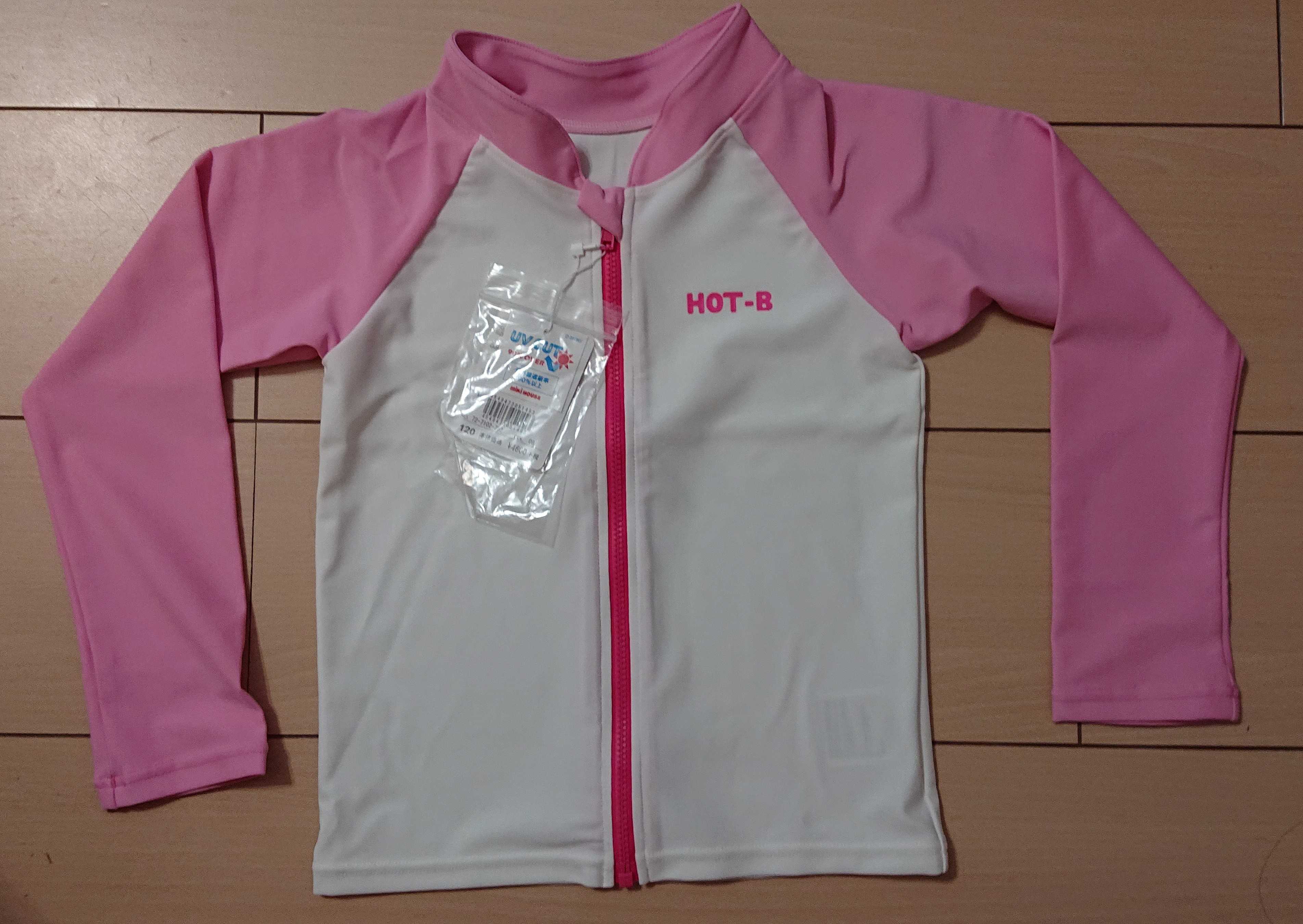 ラッシュガードはピンクの120です。