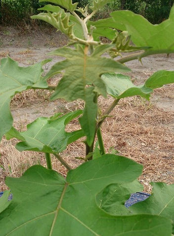 2本買った ナスの苗。1本は ちゃんとしたナスが出来ていますが、もう1本がこれ。花も咲きません。何!?これ・・・(-.-;)