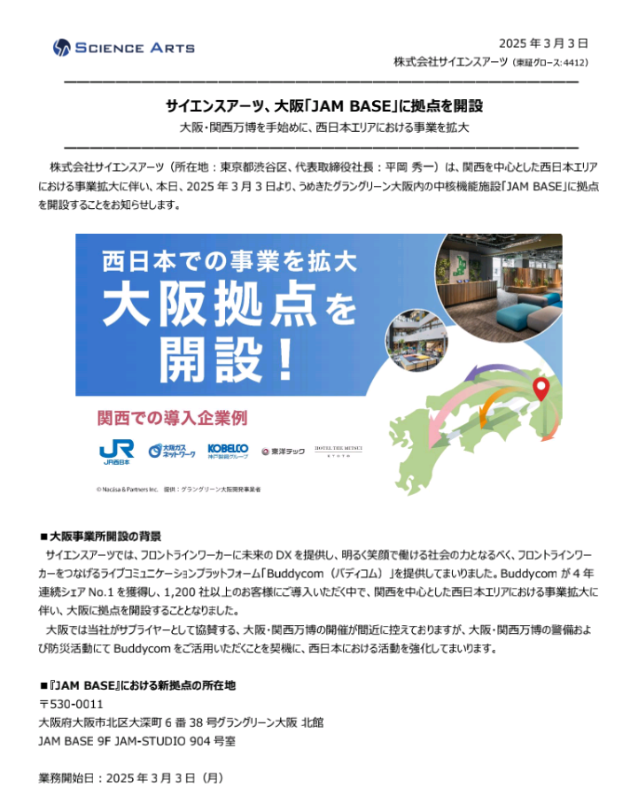 「西日本で事業を拡大、大阪拠点を開設」とある。