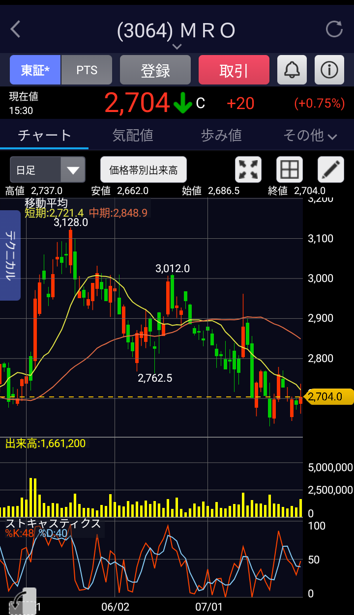 ⬇ MonotaROの利確目標株価は3,300円だが遠い😓