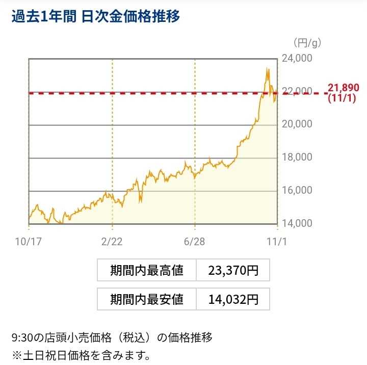 ⬇金価格の上昇で、予想以上に資産が増えている😜⬇