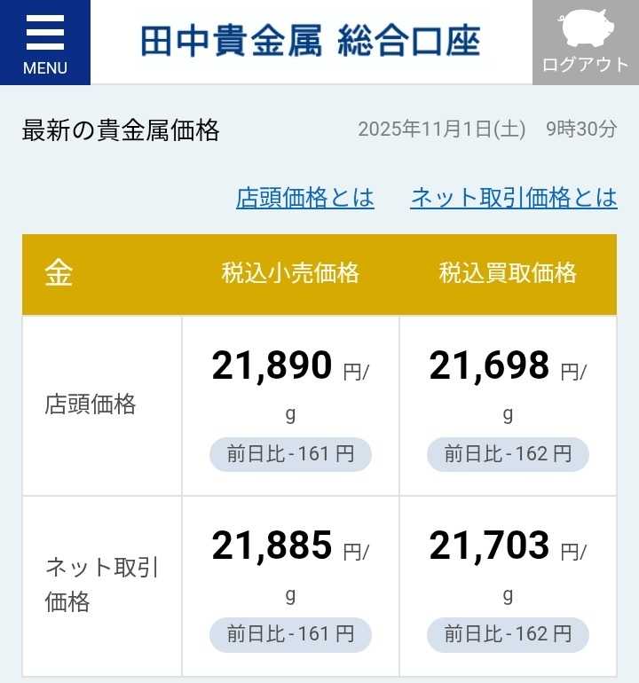 金関連商品の口座残高が、約1306万円へ。金… 2025.11.15