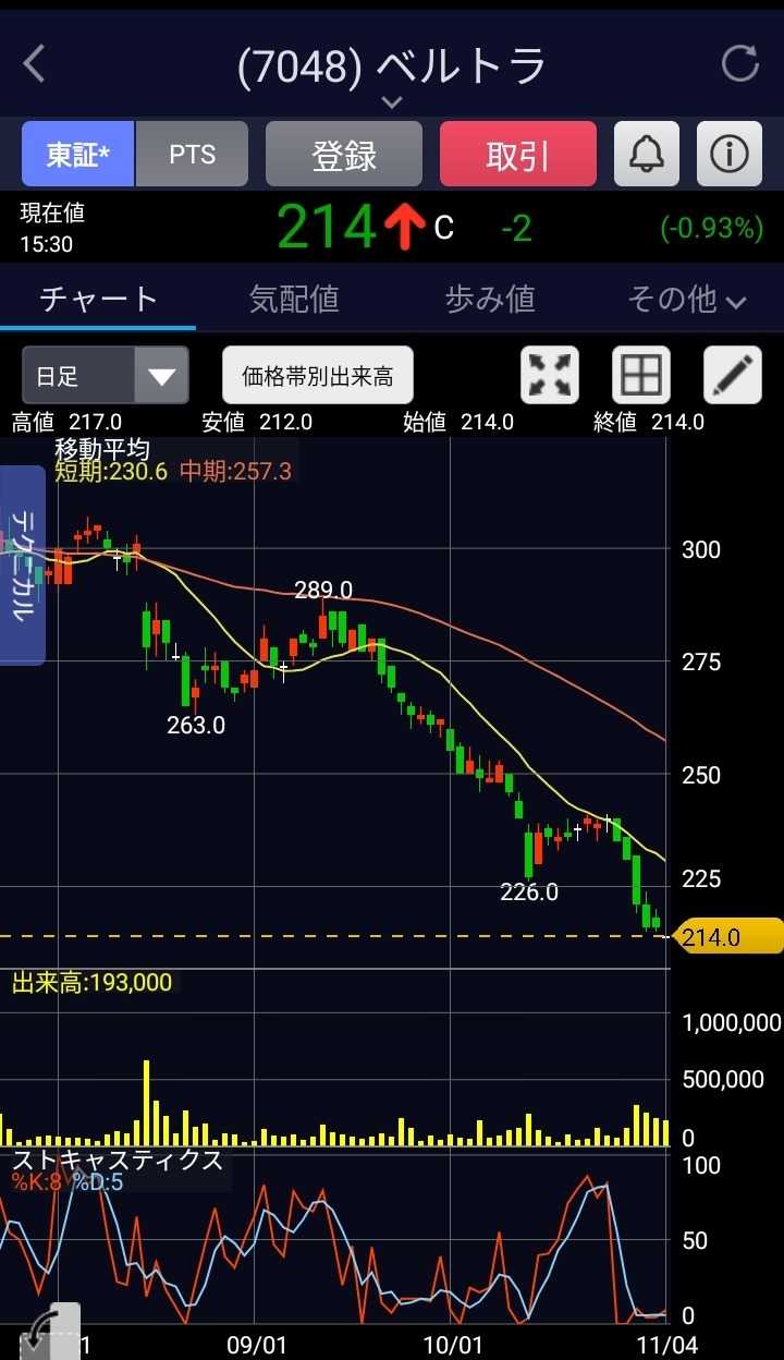 ⬇保有株は1銘柄大幅上昇を除き、下落している😅⬇