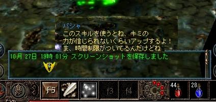 まずは・・・これですねw(時間的には1日に2LV上げたw早くも?LV上がりました~(現在は26%お次は・・・友達との会話中に丁度私がクロトレみに裏に行ってたときの出来事w( ´,_ゝ`)プッむなしいですねぇ~・・w( ´,_ゝ`)プッお次は・・・PSしたらアイテム名が反転されましたこんな感じに・・・同じディバなのに武器と防具で違うのが気になるけど無視~(ぇそしてラスト?は最新!生き返ったら姿なくなってね・・カーラの光盗られました(ノД`)・゜・。その後・・・ 死んだらマエルが存在している怪しい空間へ^^;(予想図書館wあとは、成長発言を地道に追加しました~珍しく今日の一言入れときます・・・PT中に一人で笑ってました(´・ω・`)ショボーン