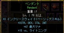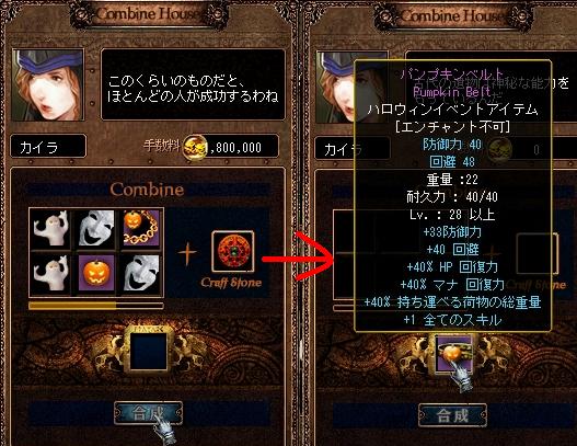 さて、タイトルがさらに長くなりましたが気にせずの・・(@5日くらいはタイトル決まったな・・今回もまたSSの紹介をしていくだけです・・(ネタは・・ないかな^^;まずは・・・バグからいきましょう(※注意:バグのSSではありませんがwコレは、10時過ぎのアイテム欄の様子です@1が埋まってないのがバグのせいですねw10時過ぎからパンプモンスターが沸かなくなり残っていたモンスからしか箱を取れない状態になってましたね~(なぜか過去形おかげで私はここで今日の狩り終了しましたがwこのラストの収穫物が一番総額多かった気がしますw(人形*1 +5PN/PP*1 チョコ*11などお次は・・・+9PPが2個出来たので強さ比較~」このような補正ができましたっと(赤が高い方 黄色が低いほう 緑は固定ちなみ補正は・・・防御15~17% クリ14~15 INT10 魔攻14~26 ダメ無効2~5 全1スキルお次は+10PPの補正のすごさでも・・・補正は・・・・・・防御18~20% クリ15~16 INT11 魔攻15~28 ダメ無効2~5 全1スキルなので、ほぼMAXですねw(防御20 クリ16 魔攻27 ダメ無効4 全1スキルさて、最後行きましょう・・・+10PPのその後ですwド━━━━(゚ロ゚;)━━━━ン!ド━━━━(゚ロ゚;)━━━━ン!ド━━━━(゚ロ゚;)━━━━ン!じゃ、なくて・・・キタ━━━━━━ヽ(゚Д゚)ノ━━━━━━ !!!!!キタ━━━━━━ヽ(゚Д゚)ノ━━━━━━ !!!!!キタ━━━━━━ヽ(゚Д゚)ノ━━━━━━ !!!!!初!キングパンプキンペンダント成功でしたっと(最後はあっさりwでもね・・・作った物の@2個作ること確定よ^^;+10PPもほぼMAX補正だったから交換してもらってもよかったんだけどすっかり忘れてました^^;(だから成功したのかも?w 勿論70%でしたけれどwおまけ シュレ人形 :12戦8勝4敗 本:8戦2勝6敗 (勝率・・人形:66.66・・% 本:25%ヘイゲル人形: 9 戦6勝3敗 本:6勝のまま (勝率・・人形:66.66・・%パンプベルト: 2 戦1勝1敗 (勝率・ベルト:50%本日の一言!丁度、友達と内緒で何かについて話してたとき私が【ано━━━ヽ(゚∀゚)ノ━━━!!】と使った次の瞬間の成長の発言ですw今月の目標!KPP@2個 QPP@3個制作!(残金800MだからKクラ買えないじゃんorz