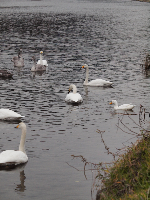 今朝の仙台は、寒くはありませんでしたが「どんより」曇っていました。昨日の日記にも書いたとおり、広瀬川では灰色の子供を含む10羽前後のハクチョウたちがいましたので、今朝はカメラを持って出動です。今日の一枚は、OLYMPUS E-620とZUIKO DIGITAL 50-200mm F2.8-3.5SWDの組合せで撮った「ハクチョウさんたちのなかに溶け込む(?)ダックくん」です。“逆”みにくいアヒルの子状態ですが、まったく意に介さず(?)悠々としていたダックくん。さすがは「広瀬川のヌシ」、風格が違います。
