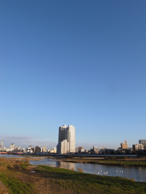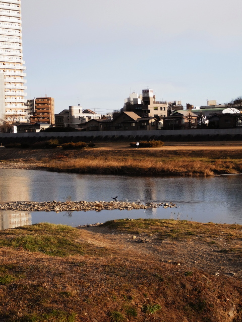 今朝の仙台はきれいに抜けた青空でした。冬型の気圧配置が続いて、先週から寒気が来ていましたが風が吹かない限り、日の当たる日中はそれほど寒く感じませんでした。今朝の自転車出勤は、週末買った「耳バンド」を装着して、耳の冷たさはかなり改善されました。今日の一枚は、定番の「朝の広瀬川」RICOH GXR + S10(24-72mm F2.5-4.4)を導入してから、24mm相当の広角フレーミングを手に入れて、景色のスナップが手軽になりました。上の写真では、引きが大きいのでわかりにくいですが、カワウ(だと思われる)が佇んでいました。堤防の上にも、眺める人、カメラを向ける人が何人か集まっていました。もう、通りがかりの人たちの目にもとまるほど冬鳥たちがたくさん集まってきたということですね。