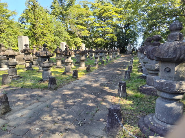 それじゃあ、ちょっと中を覗かせていただいてから出発(墓所だから足をとめることもないだろう)と思ったら、入った途端、ズラッと並んだ石灯籠