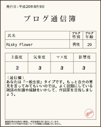 少し前から存在は知ってたんだけど…なにせ最近のワタクシときたら今まで以上に腰が重くて(自爆)なかなかやる機会がなかったんですよぉ(>▽<;; アセアセめずらしく土曜日なのに早く仕事が片付いたので…いざ、チャレンジっ!■ ブログ通信簿が…楽天の方のブログでは反応がなかったので別ブログ(といっても内容は全く同じ)でやってみました(* ̄∇ ̄*)エヘヘ気になる採点結果はこんな感じ…。まぁ~ねぇ…更新はおろそかだし…おもしろいネタがあるわけでもないので妥当な採点結果でしょっ!って結果に終わりました。本人が平々凡々ならブログも平々凡々ってことなわけよ(* ̄m ̄)プッちょっと気になったのが…「よく話題にしている雑誌の知識や経験うんぬん…」ってところ。・・・( ̄  ̄;) うーん雑誌のネタなんてあったかなぁ~?どっちかっていうと映画やら食べ物系のネタが多いと思うんだけど?(自爆)あぁ~でも…最新の10コの記事には↑これらのネタはそういえばないか…(爆)違う意味で気になるのは…性別はまぁ~仕方ないでしょ(>▽<;; アセアセだって【女の子チック】な文章じゃないですもん!(笑)それよりもなによりもうれしいのは年齢が実年齢より若いってこと!(* ̄▽ ̄*)ノ"30代に突入してからかれこれ結構、経つんだけどなぁ…(笑)こんなことで喜ぶこと自体が歳をくってる証拠だったりして(T▽T)アハハ! 今日のオススメアイテム♪(*ё_ё*)きゅん・・ラグマットではこういうの最近ちょこちょこ見かけるけど今日、紹介しているのはラグじゃないんですっ!実はバスマットなんですよぉ。こんなかわいいバスマットって今までなかったですよね?で…気になる吸水性はどうなんだろ?今日はちょっと「ウサギ」づいちゃってます?(笑)そんなこともないんだけど…たまたまの偶然です(* ̄m ̄)プッこちらのウサギさんはぬいぐるみじゃなくって…エコライフに必須のあのアイテムだったりするんだなぁ♪♪■ 台風や地震で被災した方への義援金は…ゆうちょ災害義援金送金サービス■ 日本赤十字社の義援金受付情報クリック募金サイトさんです♪* 募金は1日1回までしかできませんのでサーバー負担になるような不正アクセスはやめてください(*^^*ゞtous les deux Riskyな本棚ネットショッピング達人のお買物歴北信越アフィリエイターの会東海アフィリエイターの会